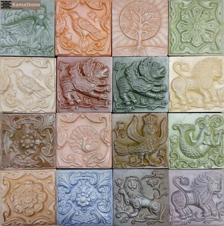 Купить Изразец декор рельефный Сказка, гипсовая изразцовая плитка, для облицовки каминов, комплект 16шт перламутр, 10*10см
