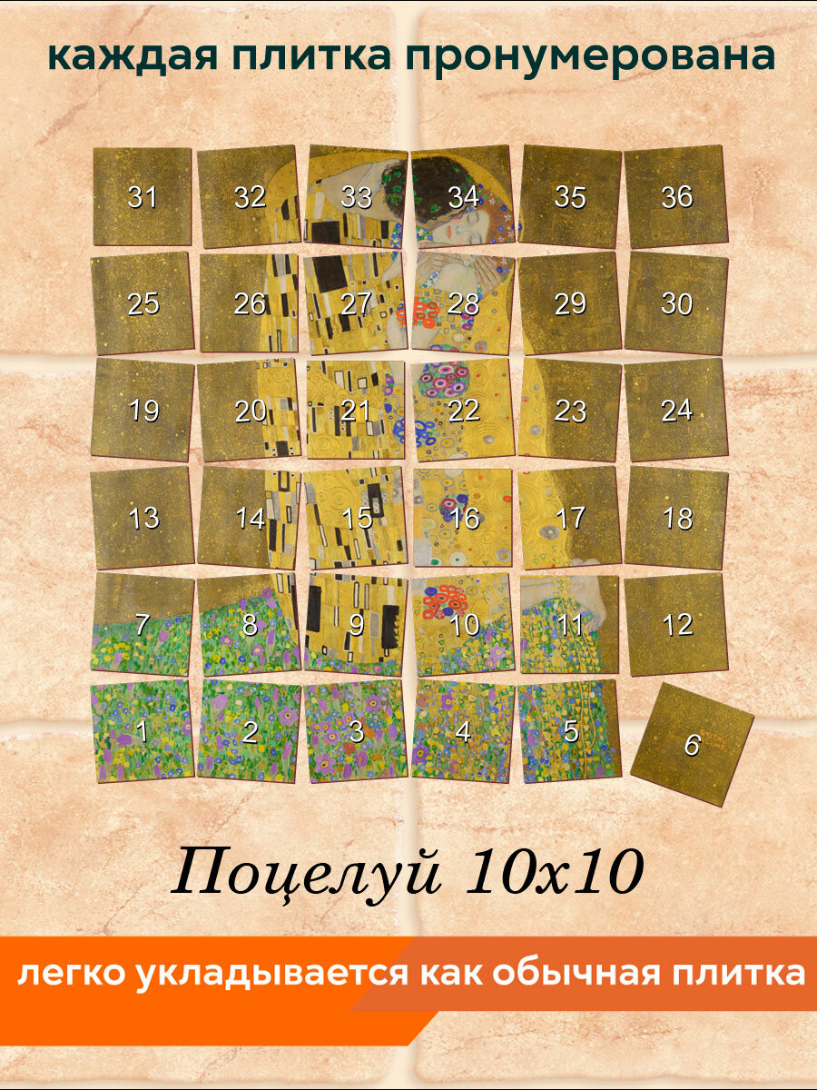 Панно из плитки Fres-co "Поцелуй 10х10", керамическое, суперматовое, декоративное, 60х60 см интересное: