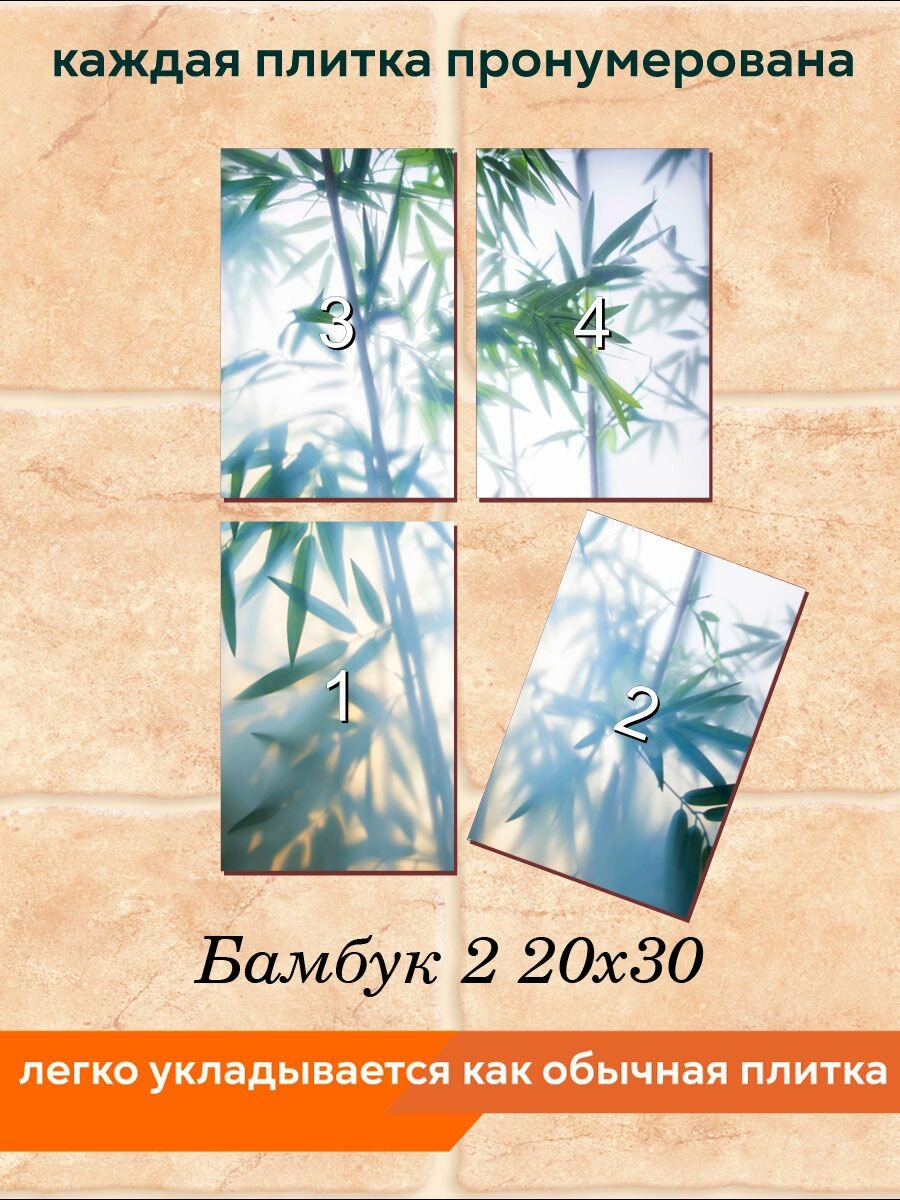 Панно из плитки Fres-co "Бамбук 2 20х30" керамическое, декоративное, полуглянцевое, 40х60 см интересное: