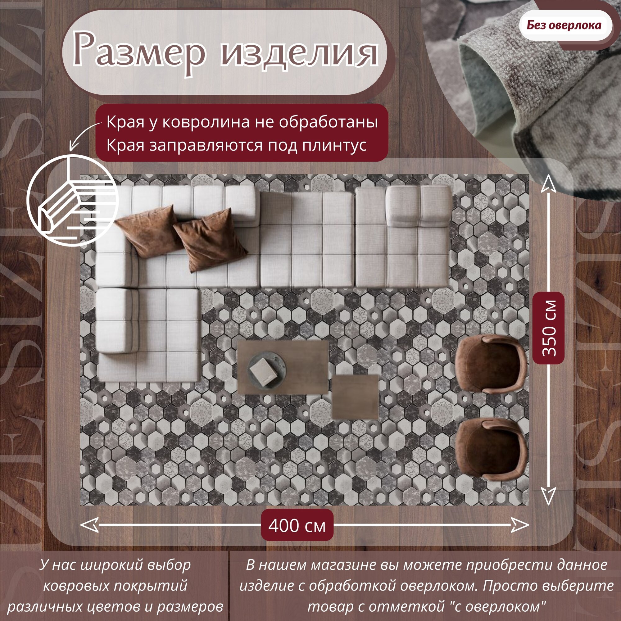 СохранитьКовролин метражом 3,5х4 м, без ворса "Сотами", коричневый без оверлока интересное: