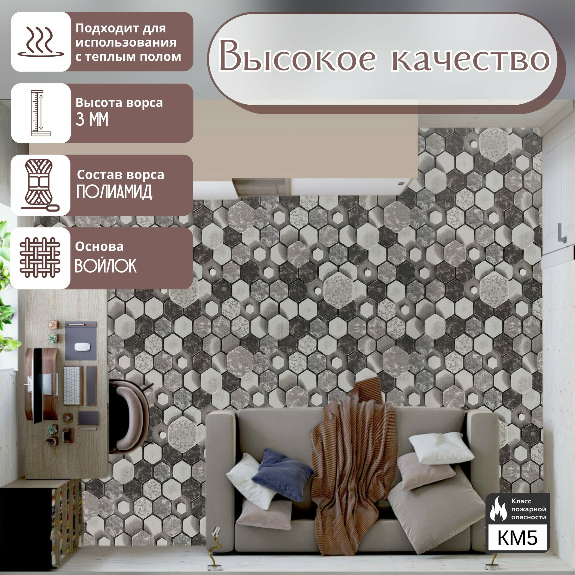 СохранитьКовролин метражом 3х6 м, без ворса "Сотами", коричневый без оверлока интересное: