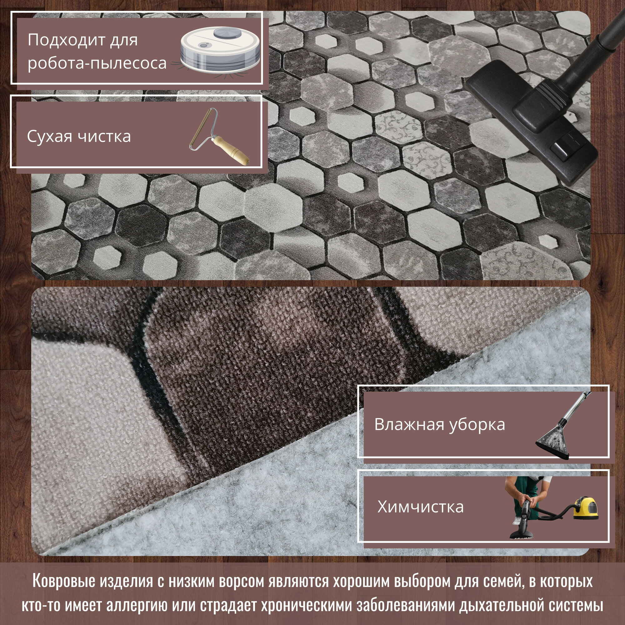 СохранитьКовролин метражом 2х2 м, без ворса "Сотами", коричневый без оверлока интересное: