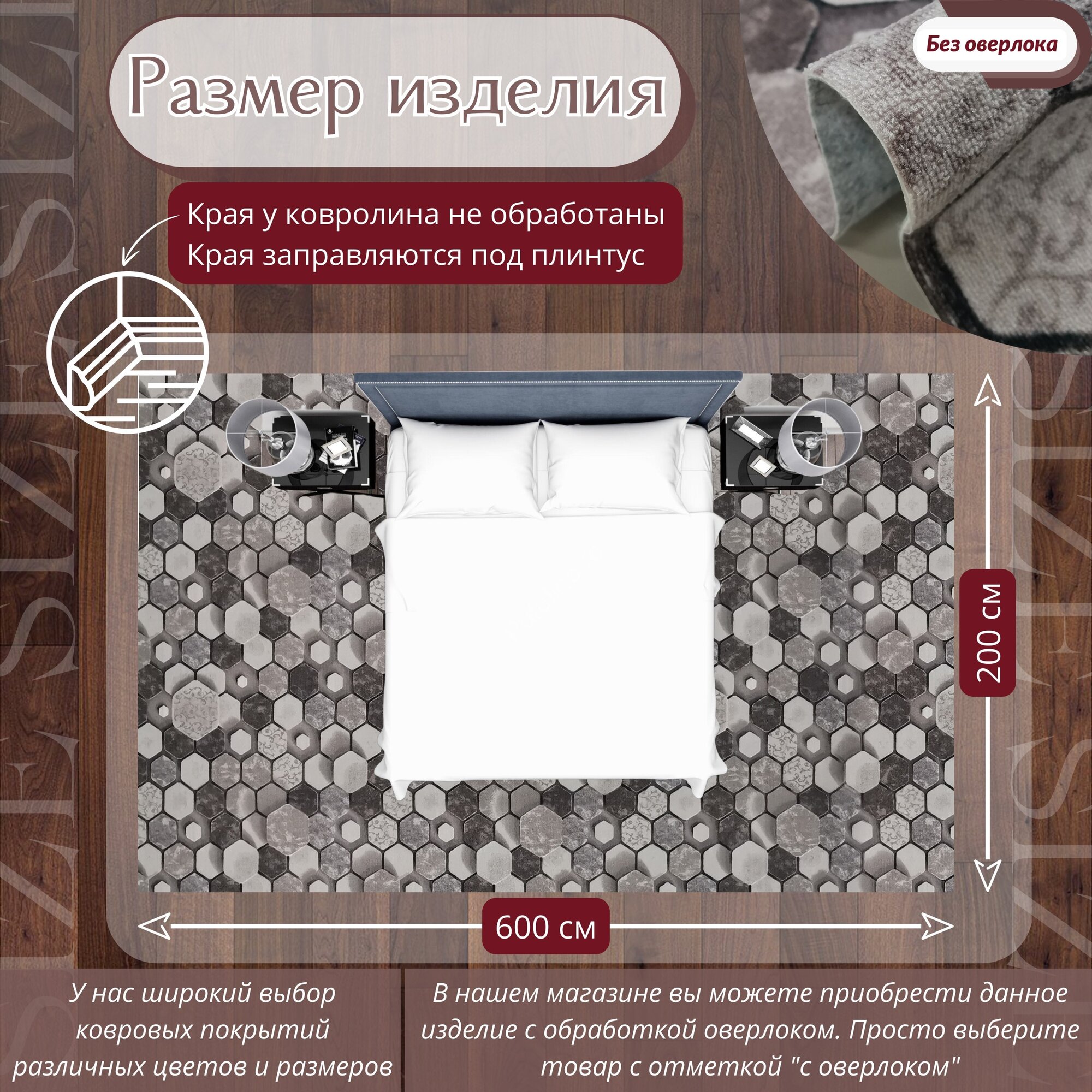 СохранитьКовролин метражом 2х6 м, без ворса "Сотами", коричневый без оверлока интересное: