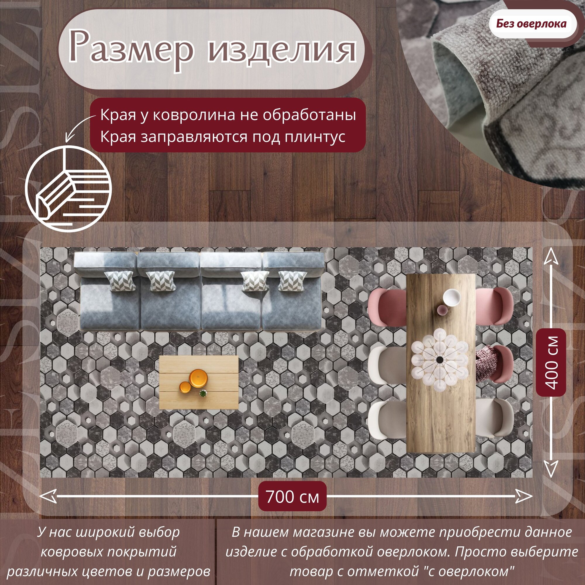 СохранитьКовролин метражом 4х7 м, без ворса "Сотами", коричневый без оверлока интересное: