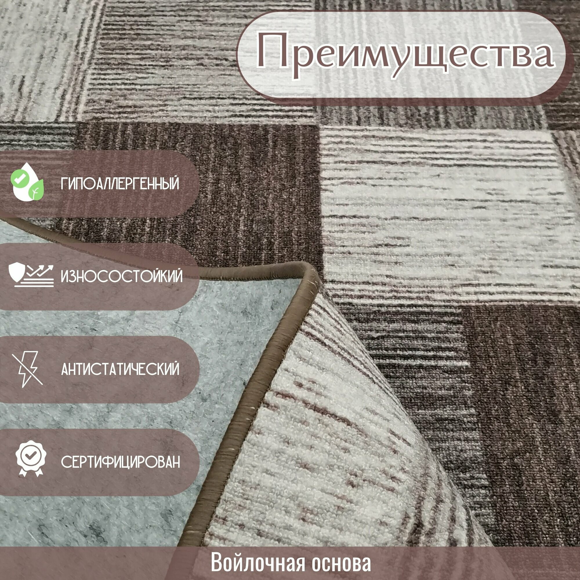 Ковролин метражом 2х2,5 м, без ворса "Плитка", коричнево-серая с оверлоком