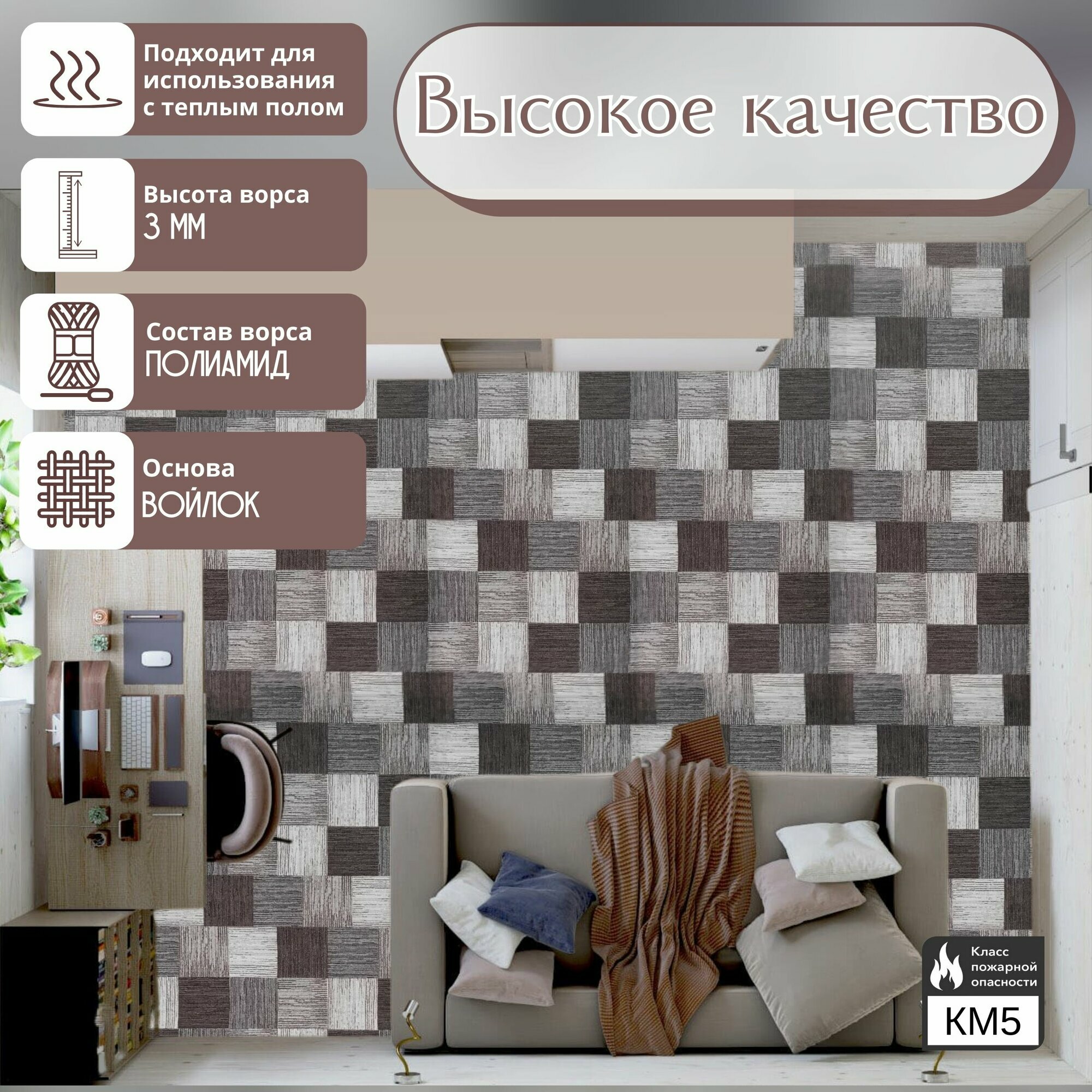 Ковролин метражом 2,5х4,5 м, без ворса "Плитка", коричнево-серая с оверлоком
