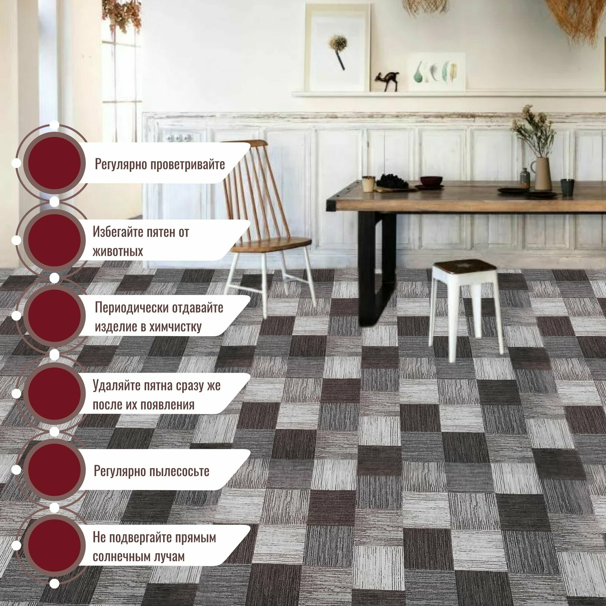 Ковролин метражом 2,5х3,75 м, без ворса "Плитка", коричнево-серая с оверлоком