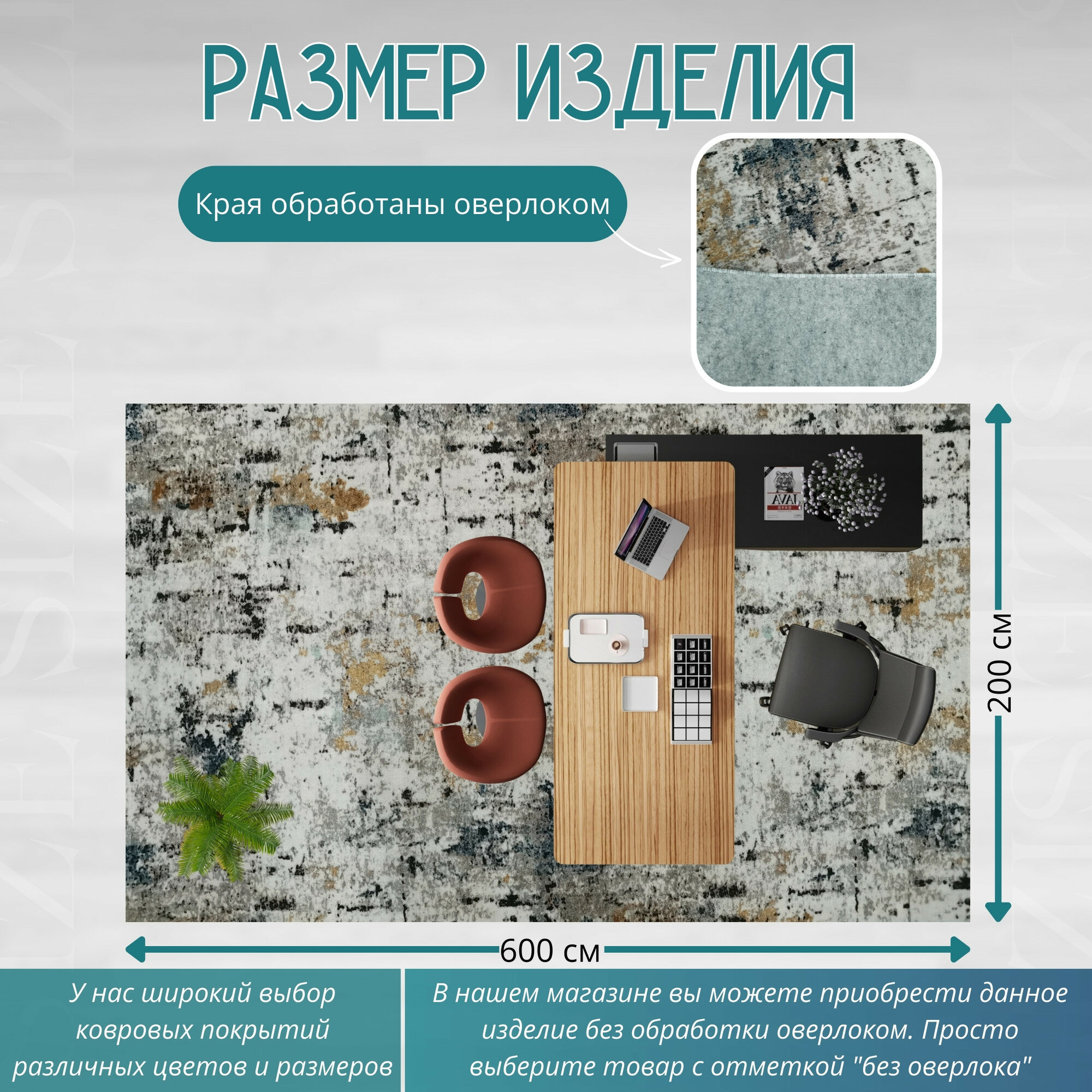 Ковролин метражом 3х5,75 м, без ворса "Стиль", многоцветный с оверлоком