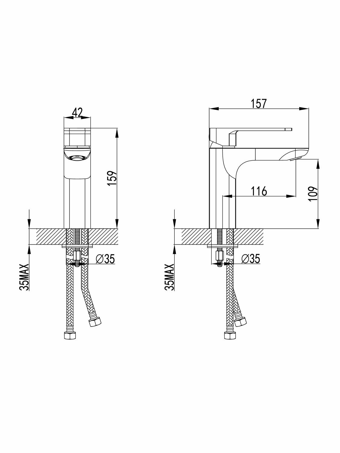 | Комплектация | смеситель - 1 шт., подводка для воды - 2 шт., комплект крепления - 1 шт., |
