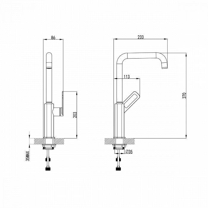 Смеситель Iddis SLIDE для кухни SLIBL00i05 однозахватный, высокий излив 370 мм, черный