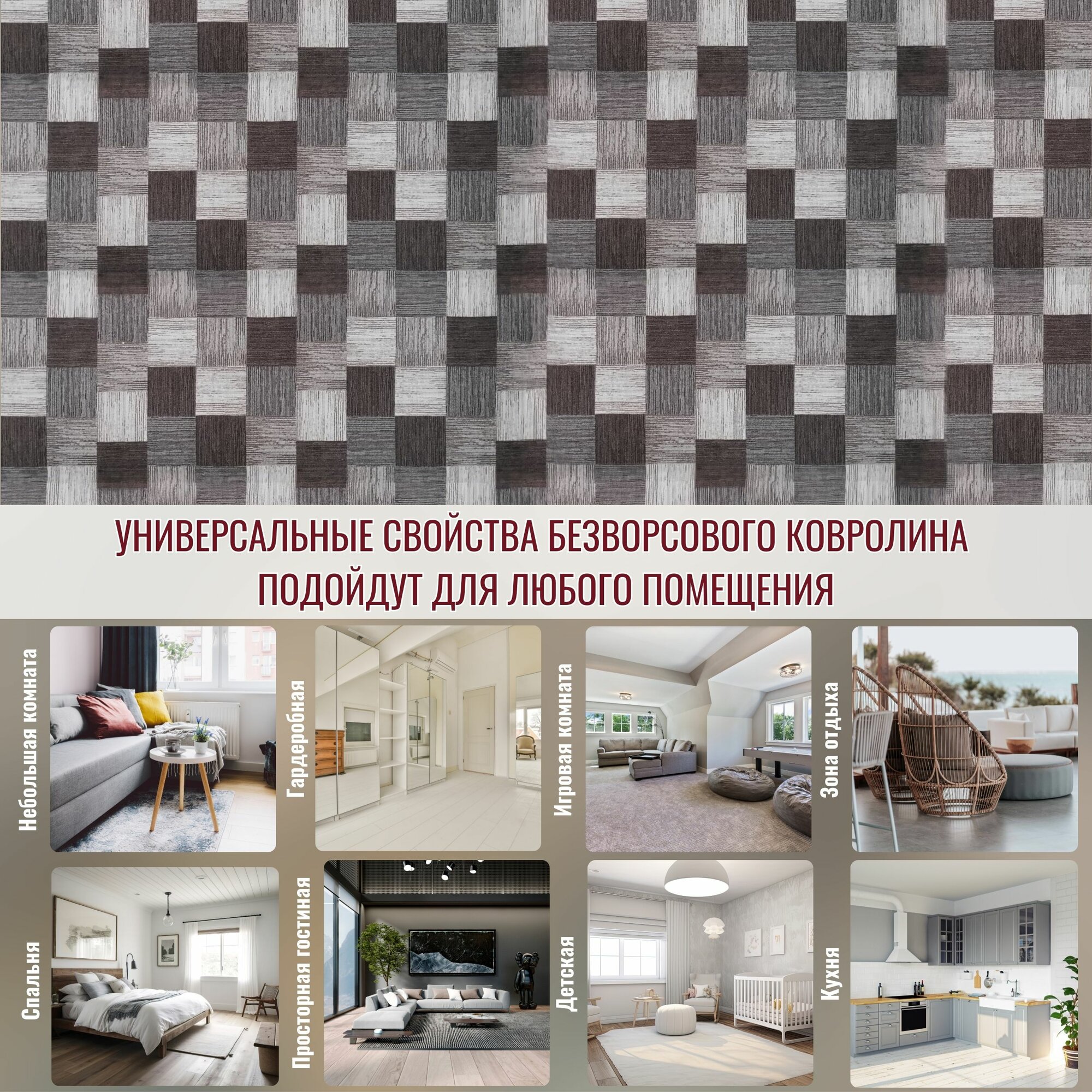 Ковролин метражом 2х4 м, без ворса "Плитка", коричнево-серая без оверлока