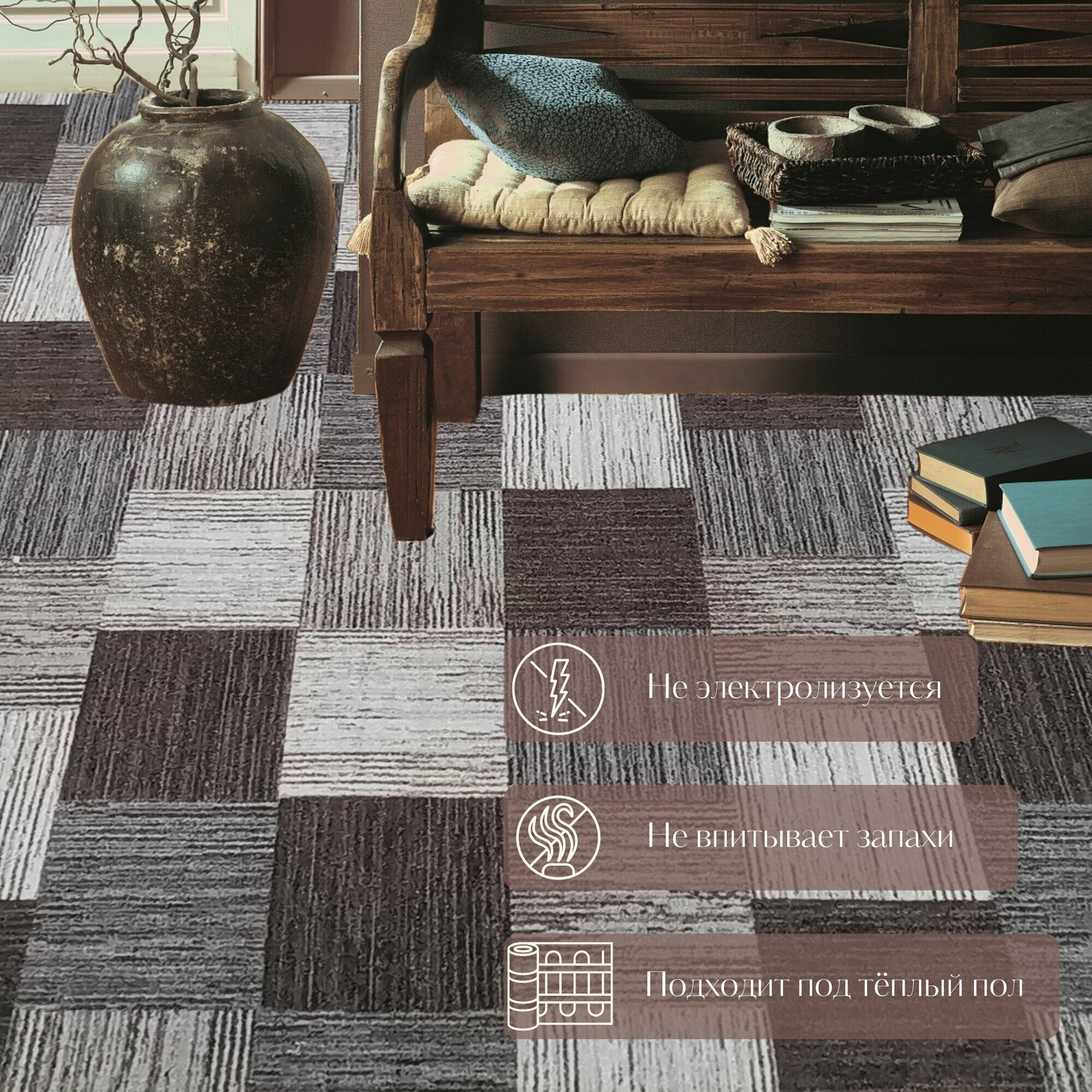 Ниже Вы можете прочитать отзывы на Ковролин метражом 3х6,75 м, без ворса "Плитка", коричнево-серая без оверлока, ознакомится с подробными характеристиками, посмотреть интересные обзоры и фотографии на Ковролин метражом 3х6,75 м, без ворса "Плитка", коричнево-серая без оверлока.