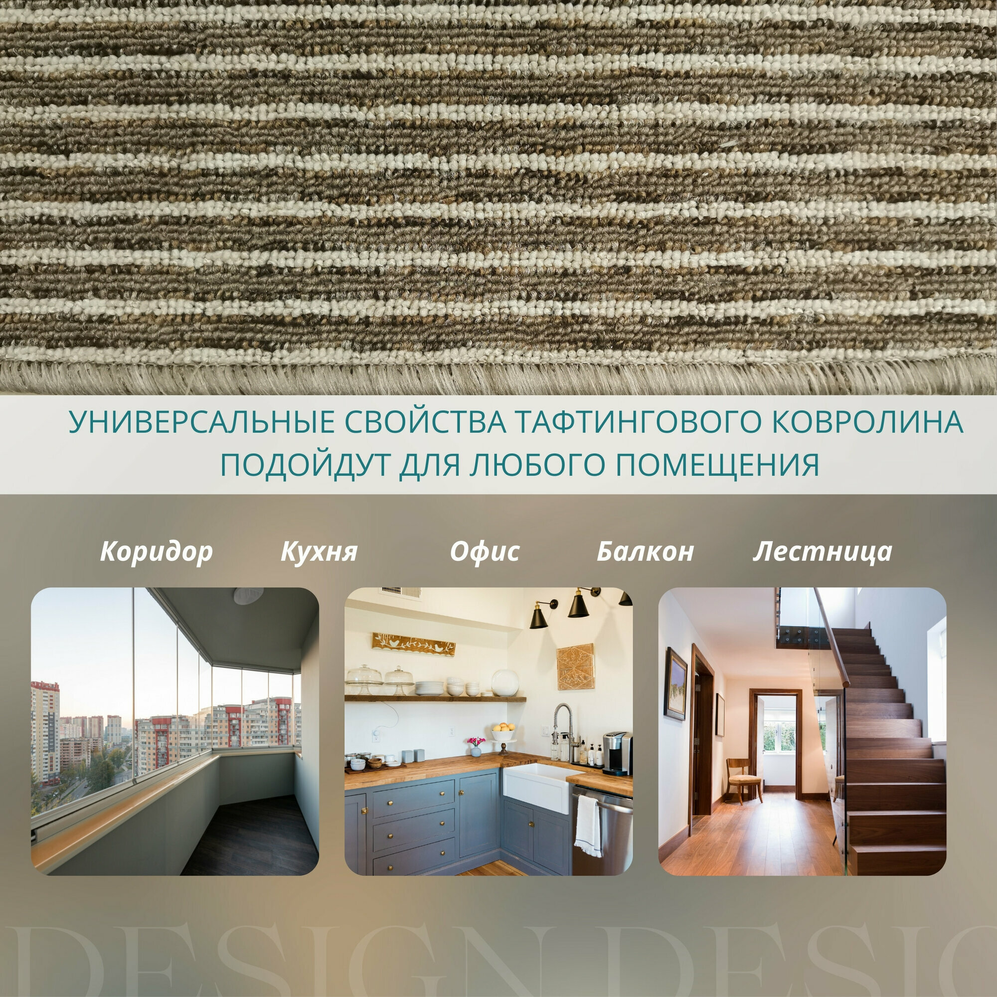Ковролин метражом 4х4,25 м, ворсовой "Бежевая полоса", без оверлока