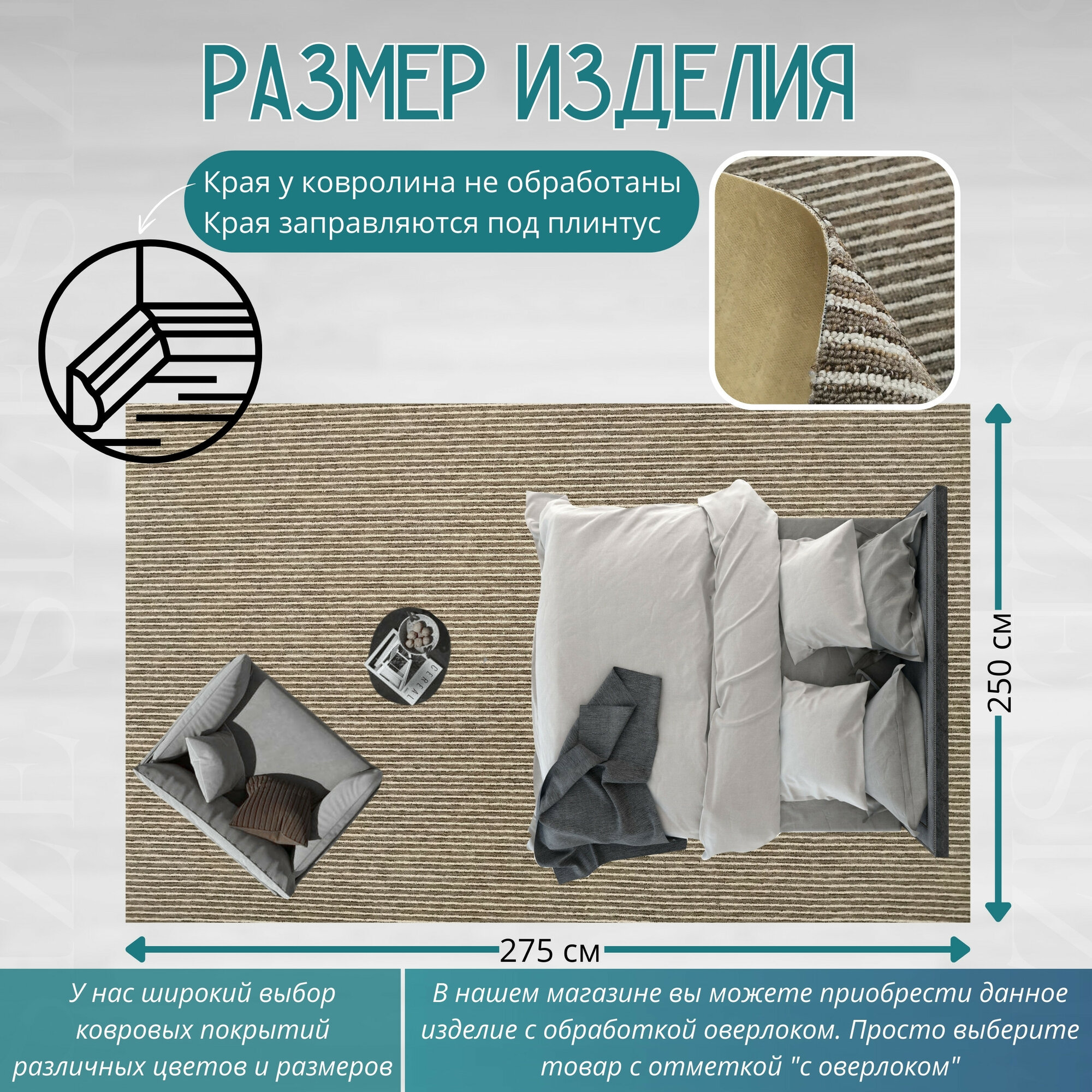 СохранитьКовролин метражом 2,5х2,75 м, ворсовой "Бежево-коричневая полоса", без оверлока интересное: