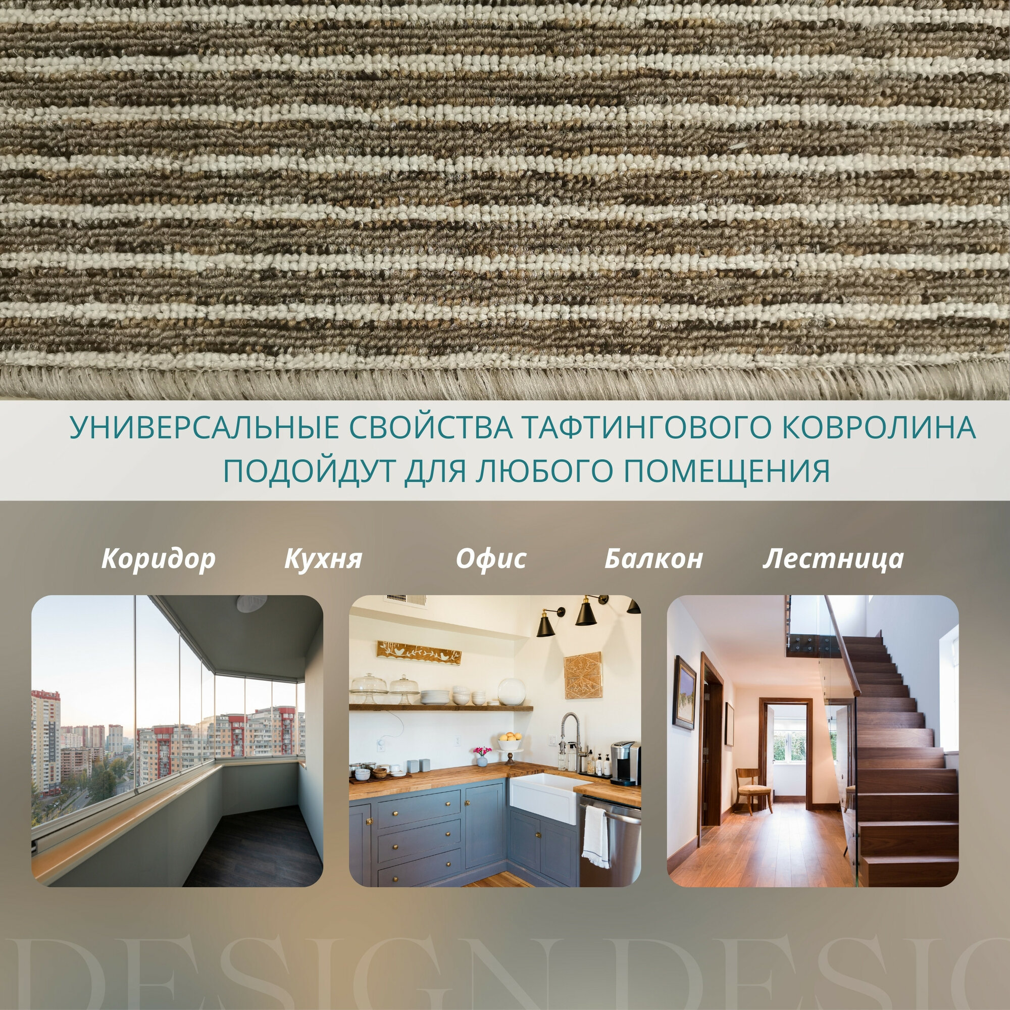 Ковролин метражом 4х4,25 м, ворсовой "Бежевая полоса", без оверлока