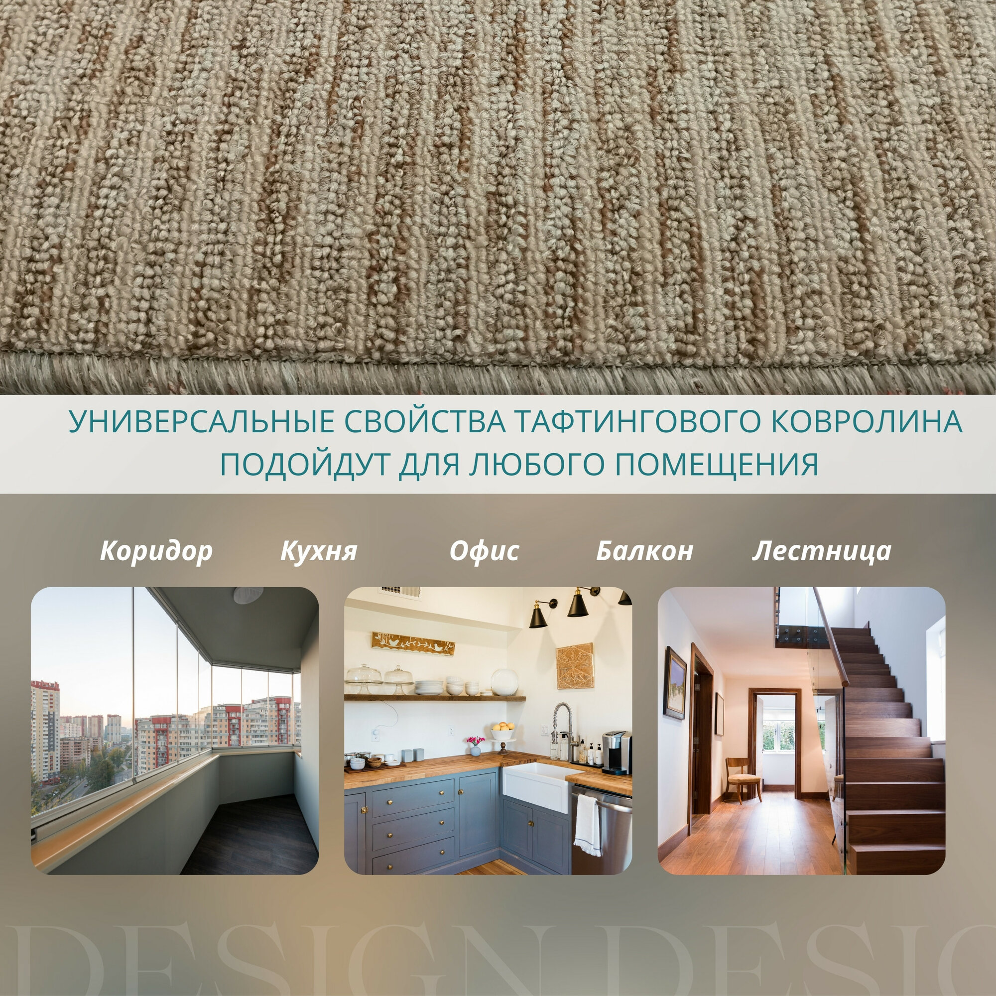 Ковролин метражом 4х4,25 м, ворсовой "Бежевая полоса", без оверлока