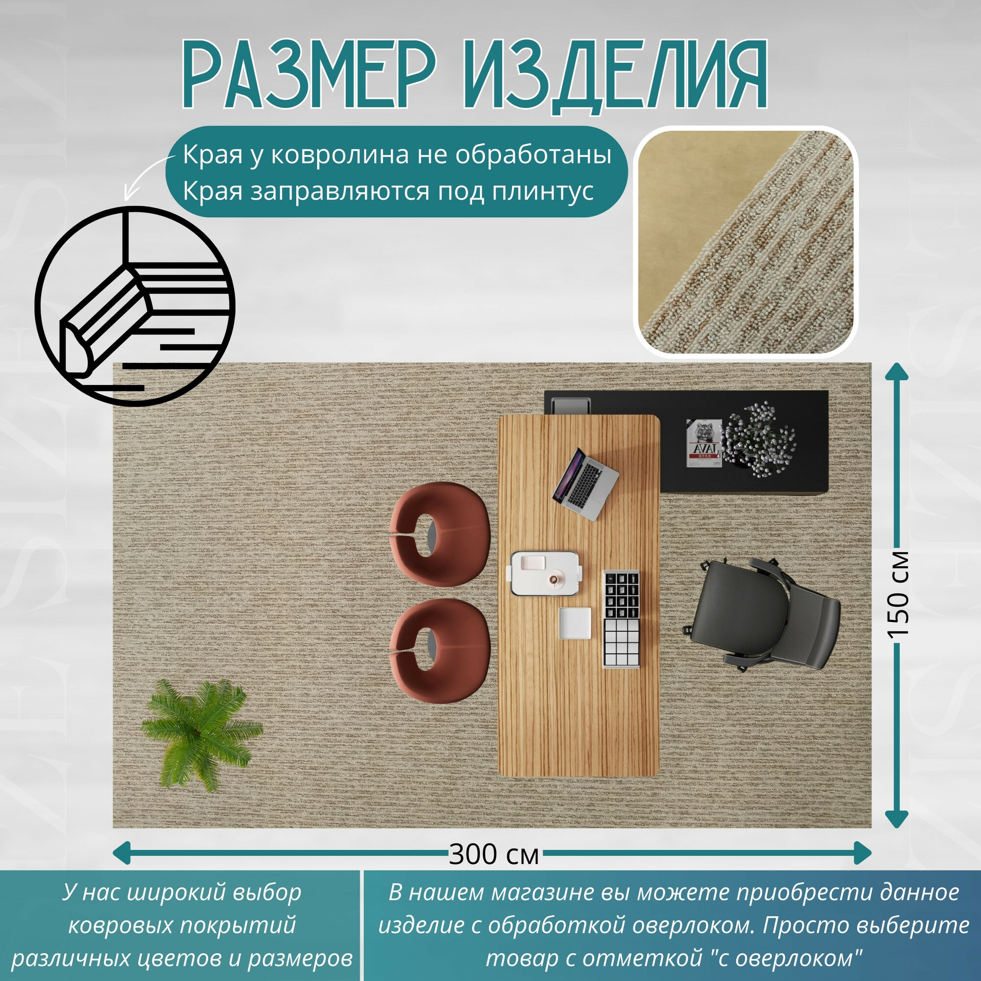 СохранитьКовролин метражом 1,5х3 м, ворсовой "Бежевая полоса", без оверлока интересное: