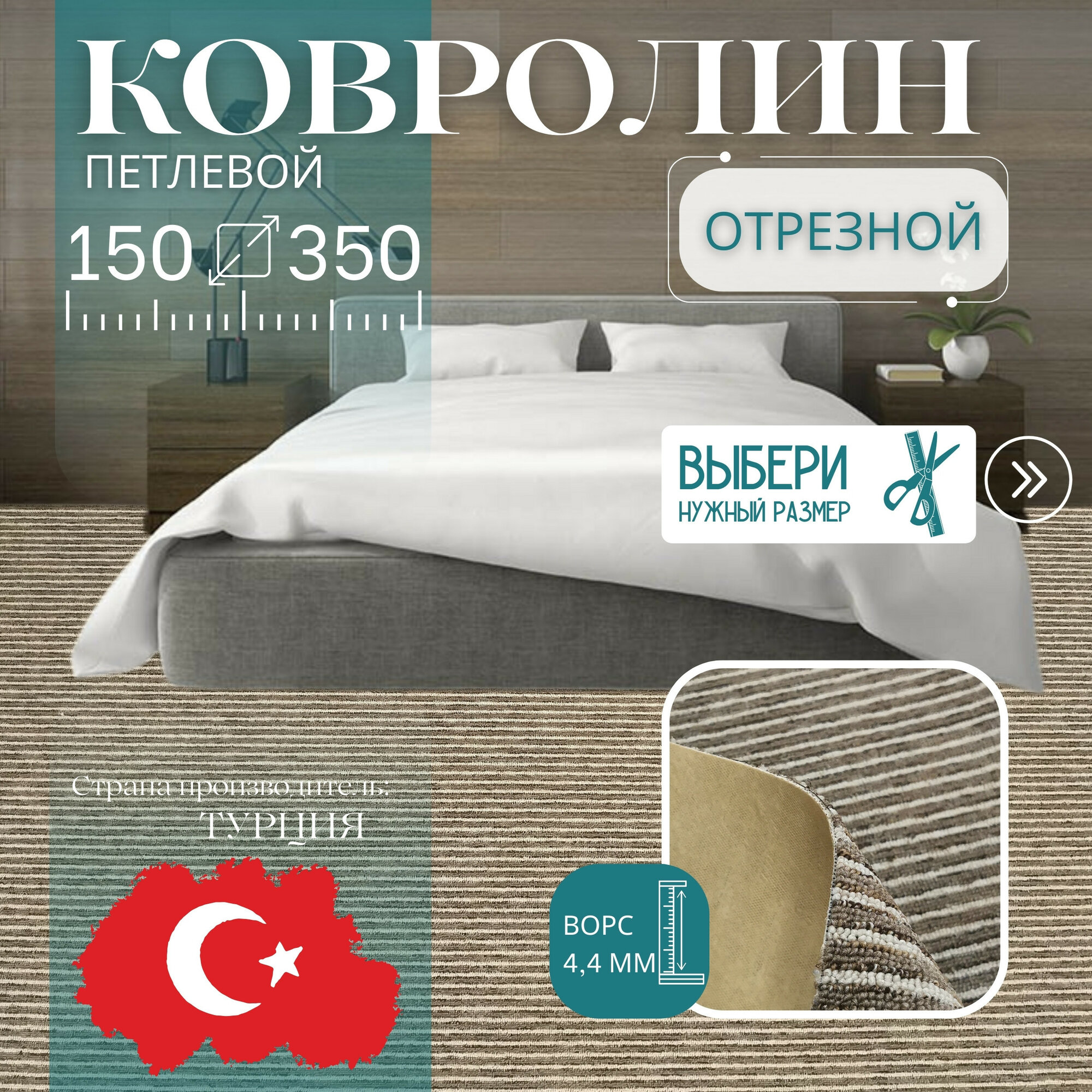 СохранитьКовролин метражом 1,5х3,5 м, ворсовой "Бежево-коричневая полоса", без оверлока интересное: