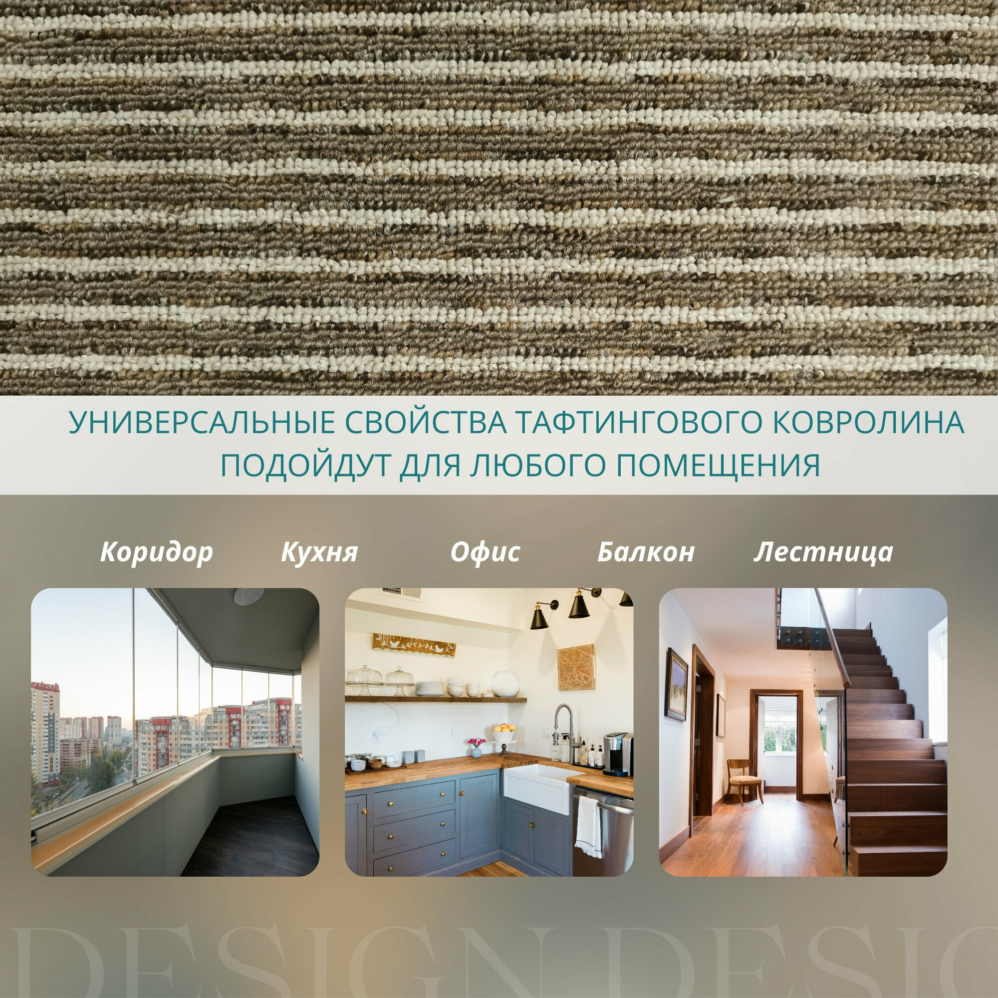 СохранитьКовролин метражом 2,5х5,25 м, ворсовой "Бежево-коричневая полоса", без оверлока интересное: