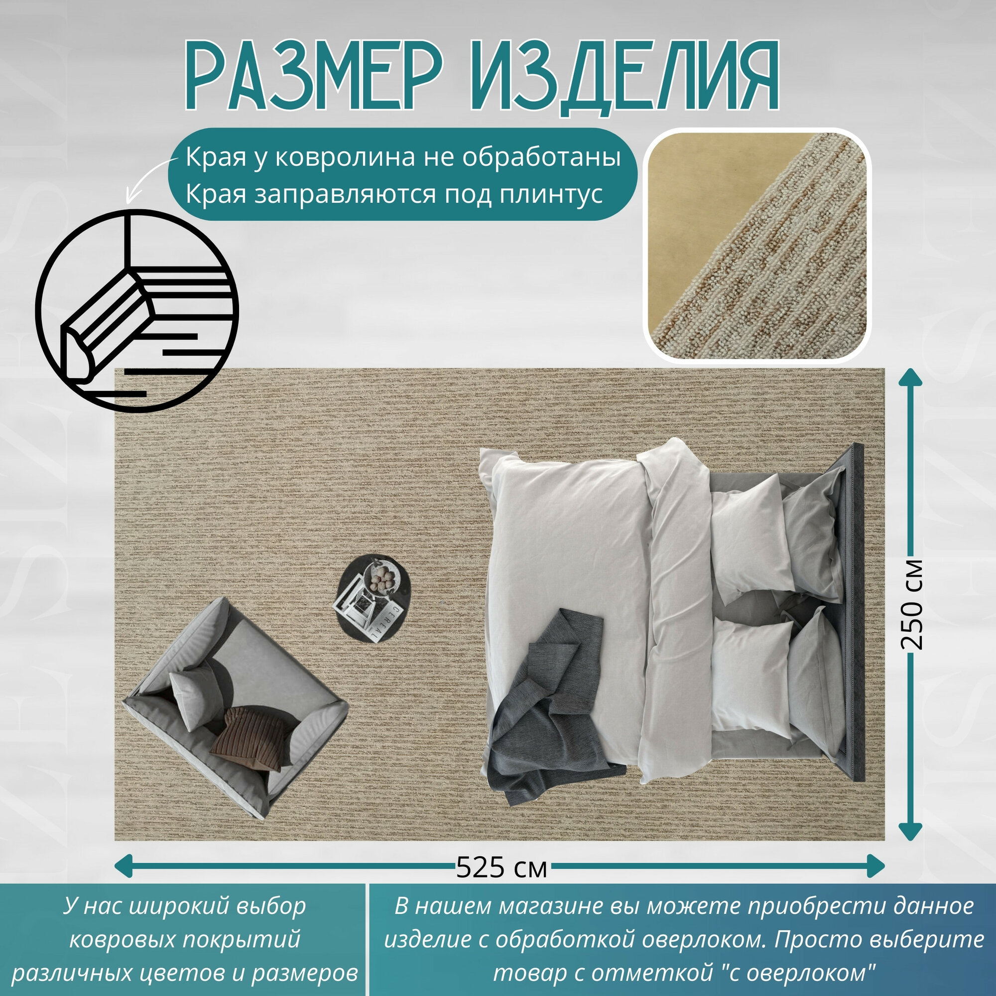 СохранитьКовролин метражом 2,5х5,25 м, ворсовой "Бежевая полоса", без оверлока интересное: