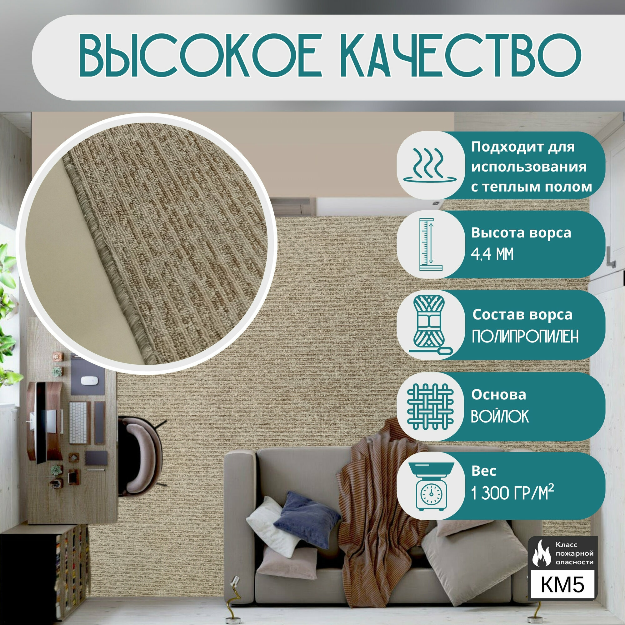 Ковролин метражом 2,5х5 м, ворсовой "Бежевая полоса", с оверлоком
