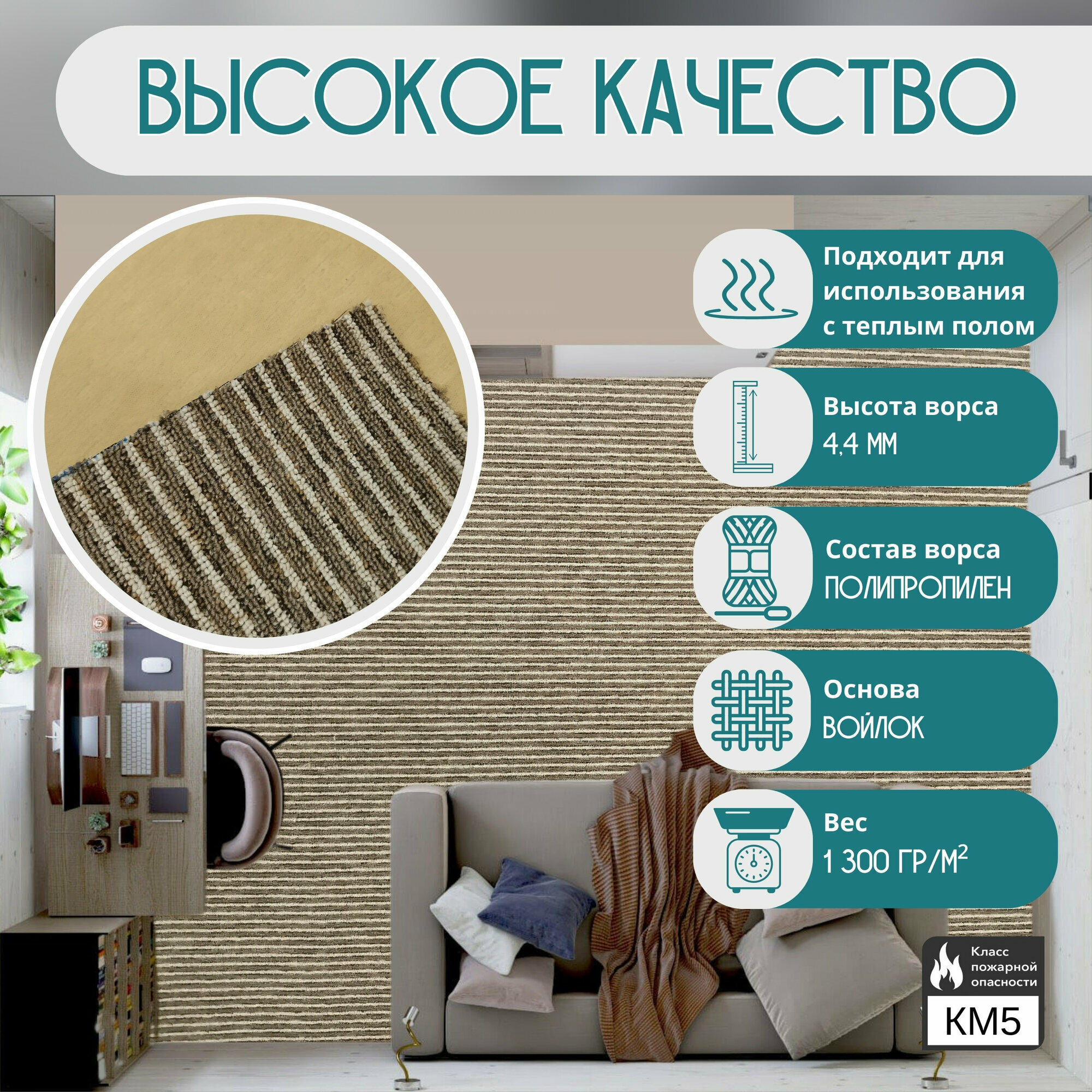 СохранитьКовролин метражом 2,5х6,75 м, ворсовой "Бежево-коричневая полоса", без оверлока интересное:
