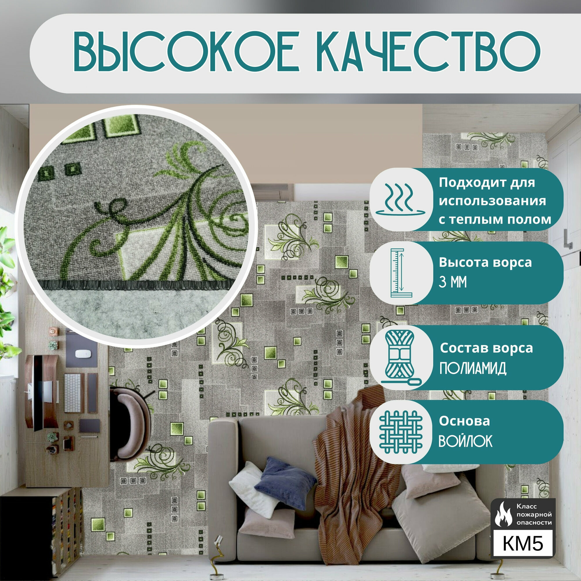 СохранитьКовролин метражом 2х5,75 м, безворсовой "Зеленый Узор", серый с оверлоком интересное: