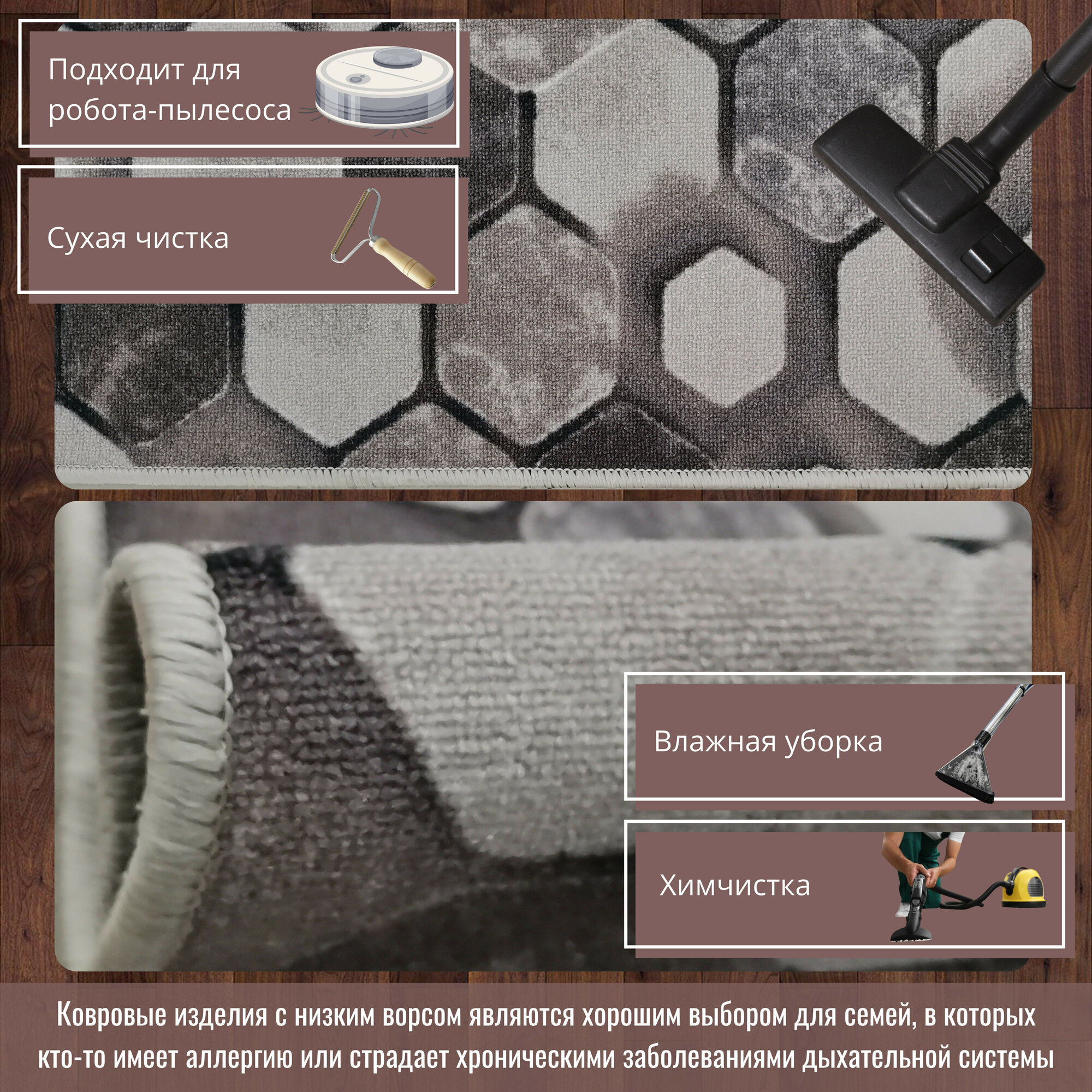Ковролин метражом 3х2,5 м, без ворса "Сотами", коричневый с оверлоком