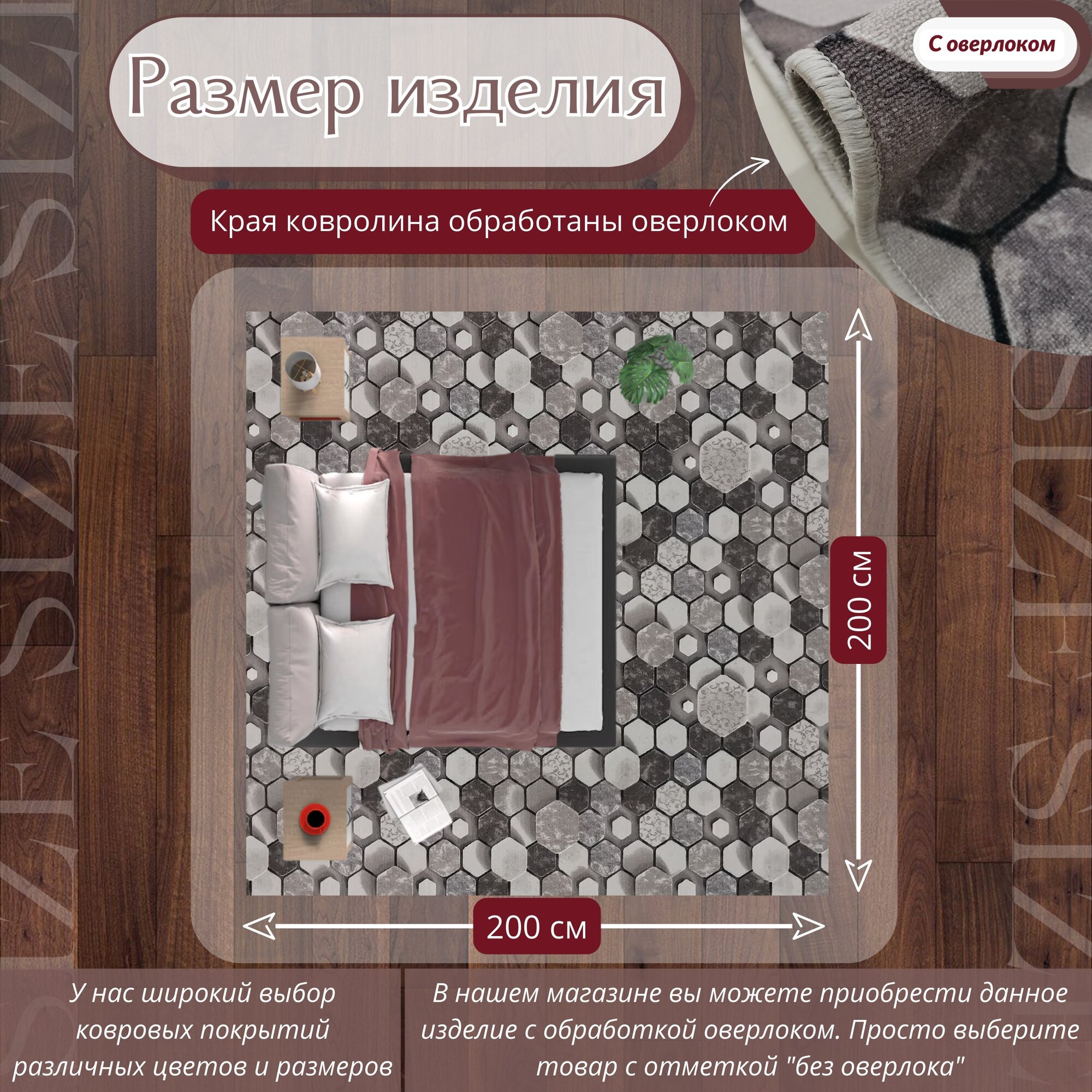 Ковролин метражом 2х2,5 м, без ворса "Сотами", коричневый с оверлоком