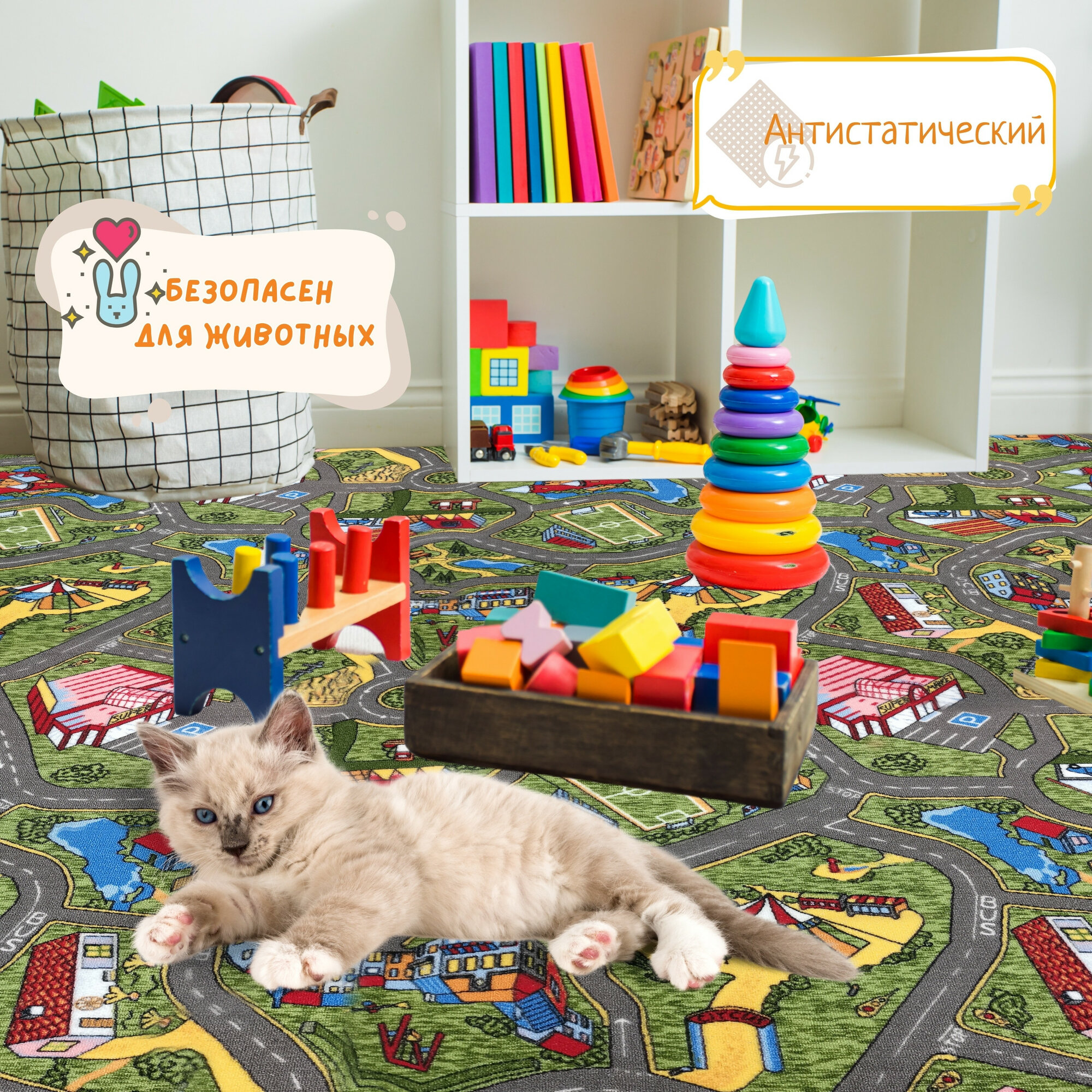 СохранитьДетский ковролин 2х2 м, "С дорогами", серо-зеленый без оверлока интересное: