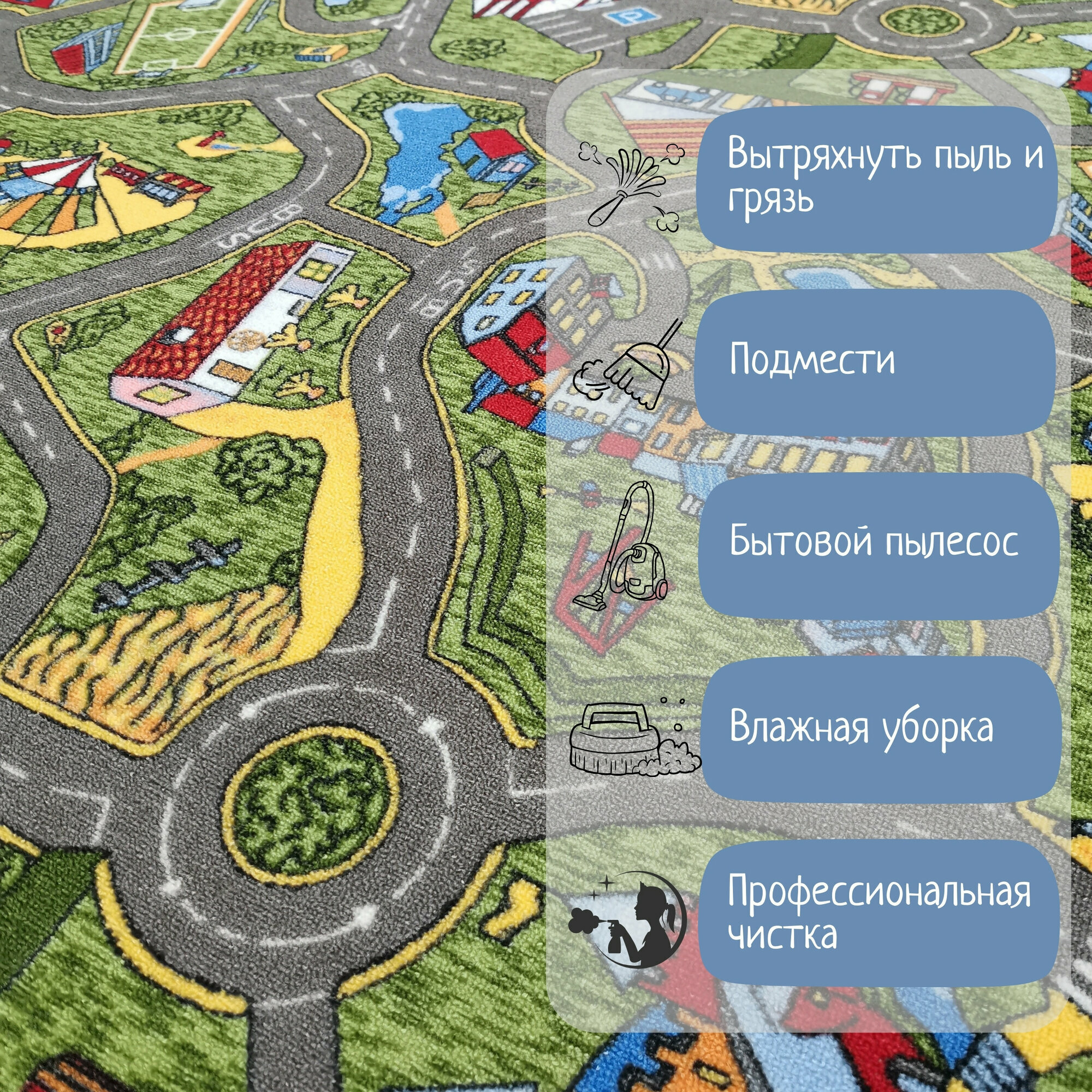 Детский ковролин 2х3 м, "С дорогами", серо-зеленый без оверлока