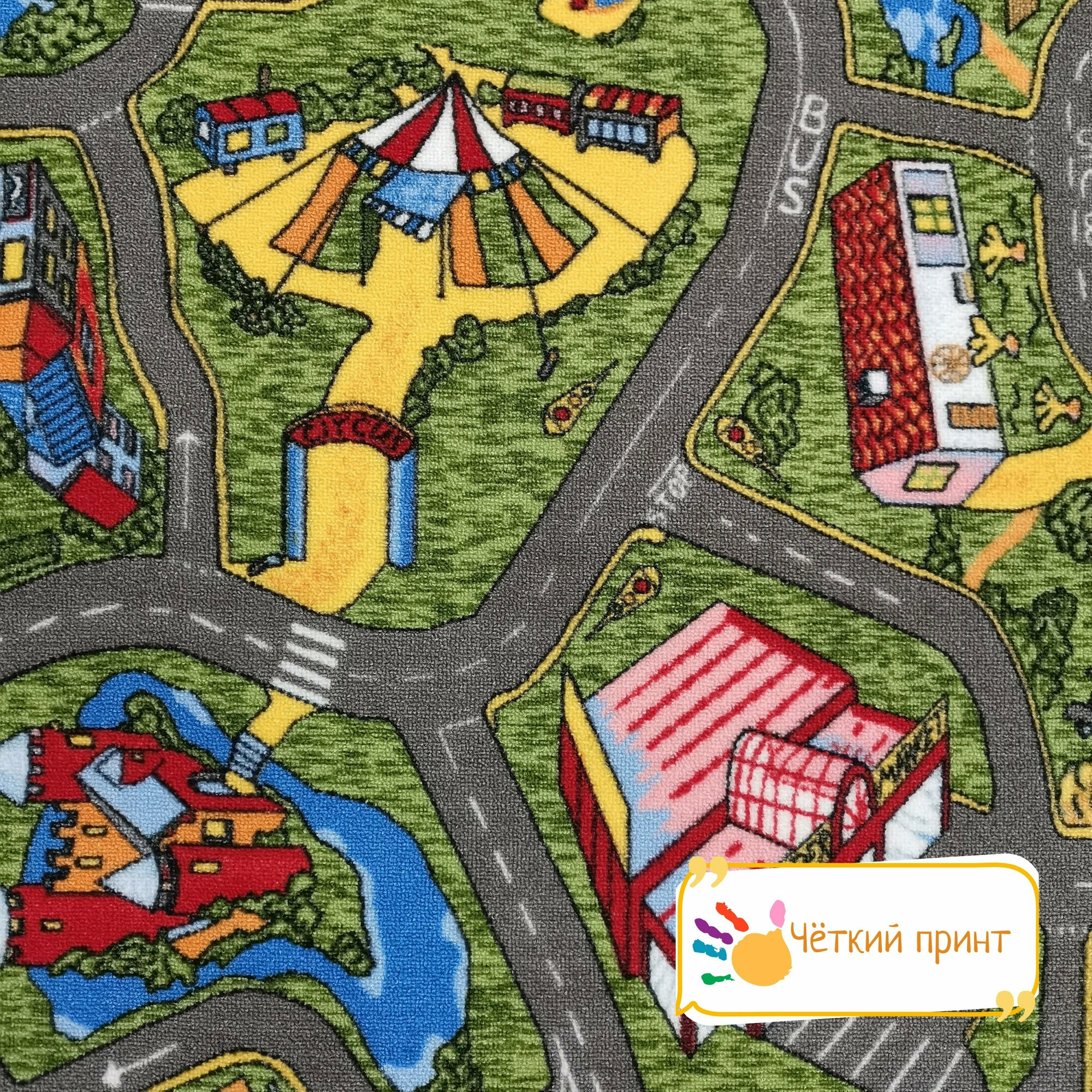 Детский ковролин 4х7 м, "С дорогами", серо-зеленый без оверлока