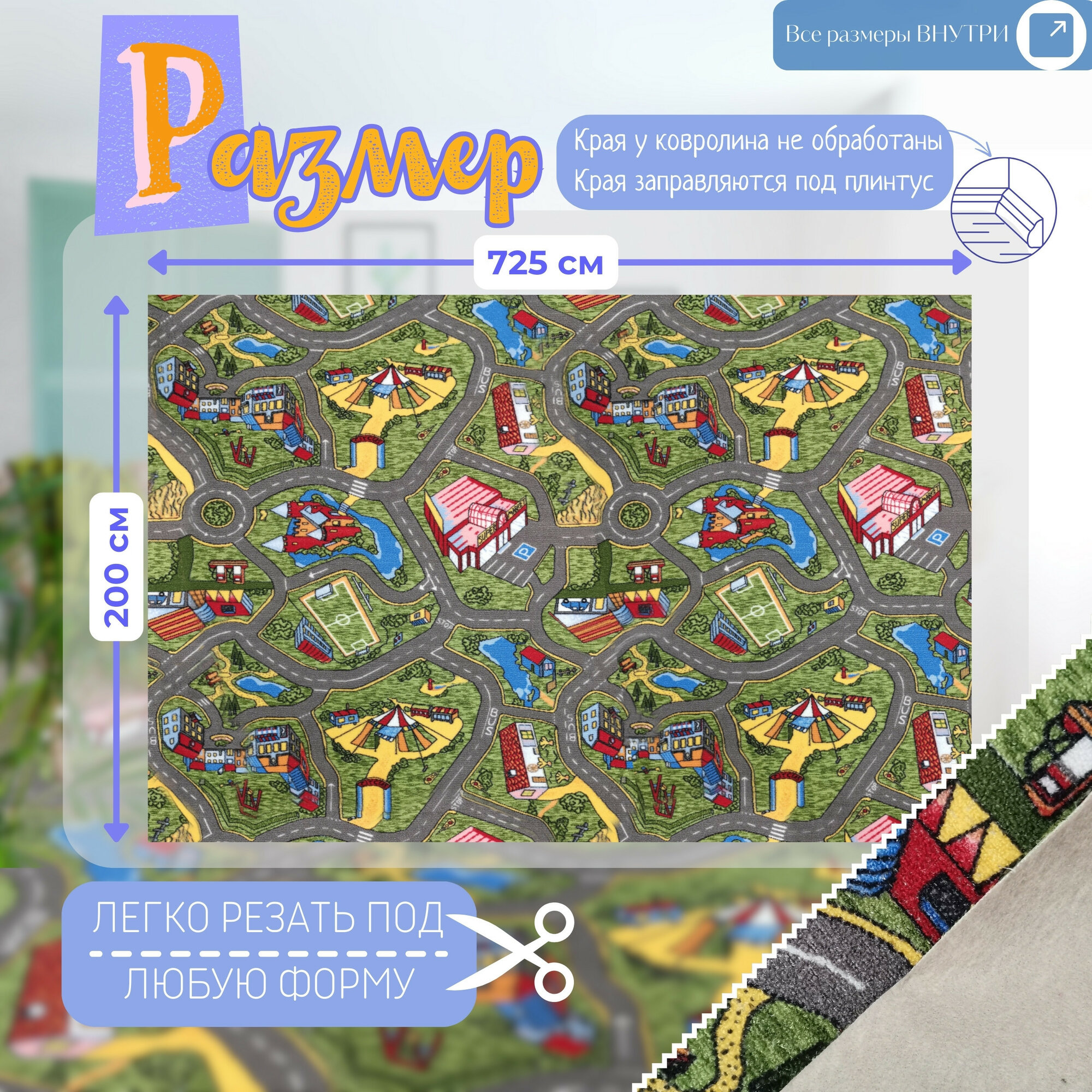 СохранитьДетский ковролин 2х7,25 м, "С дорогами", серо-зеленый без оверлока интересное: