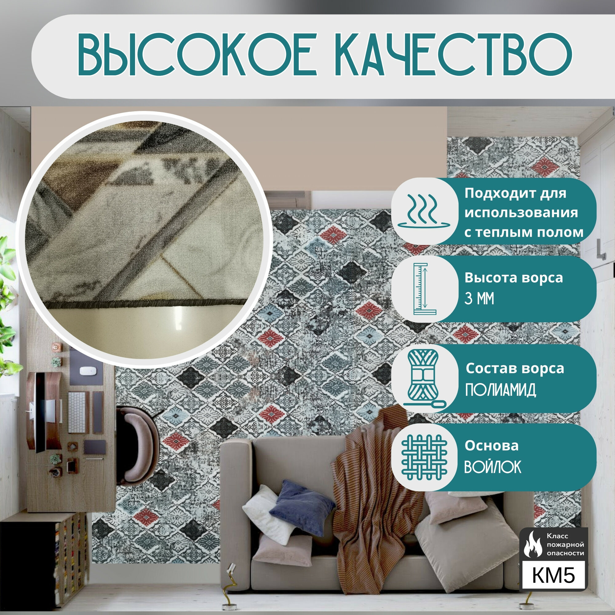 Ковролин на пол метражом 3х3 м. LEVMA DE 93-4809786