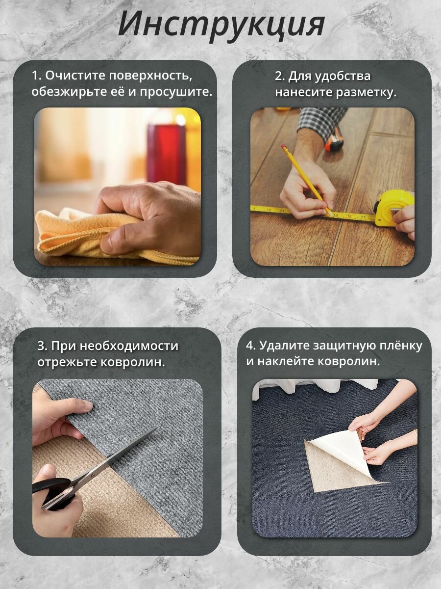 Ковролин самоклеящийся для пола 30х30см 10 шт интересное: