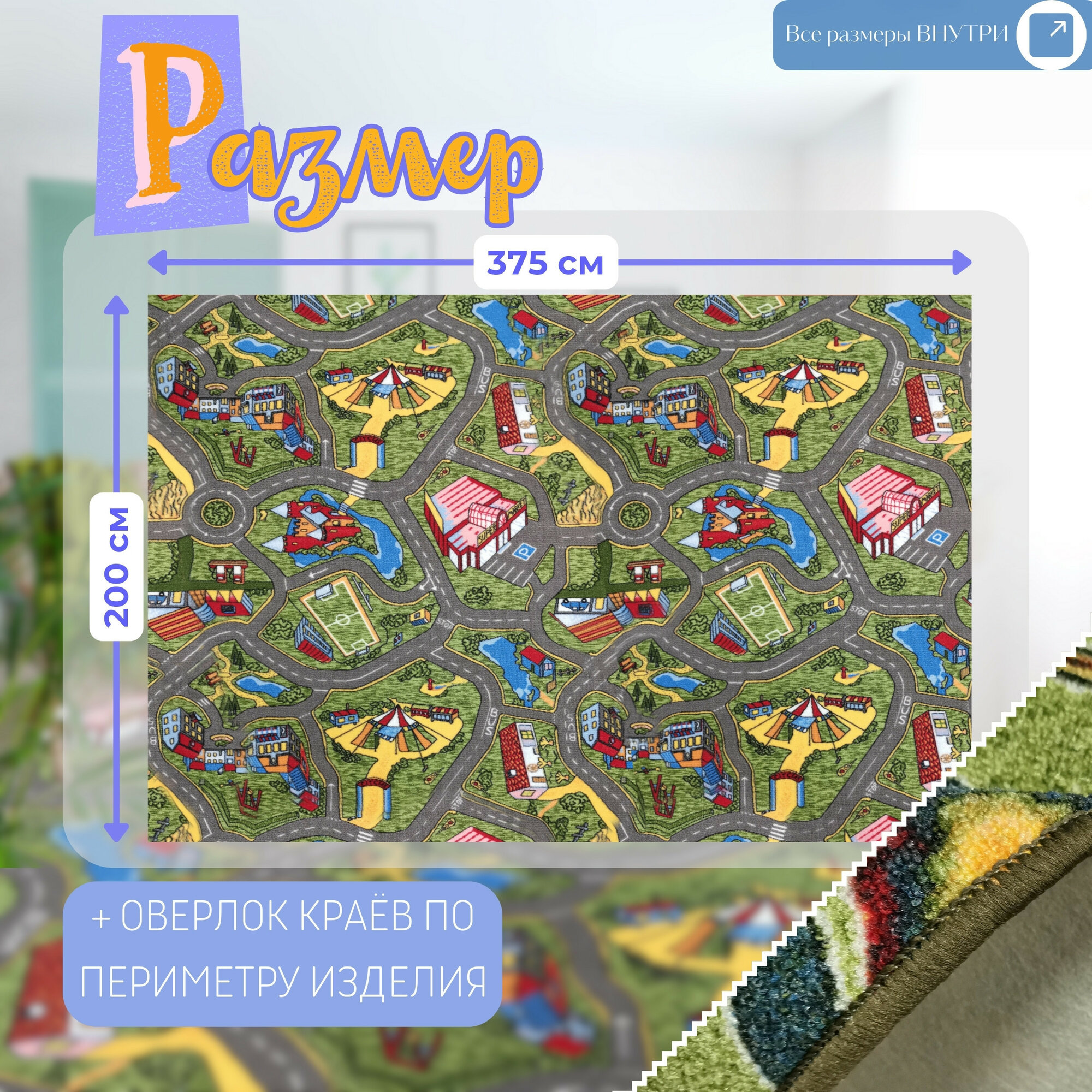 СохранитьДетский ковролин 2х3,75 м, "С дорогами", серо-зеленый с оверлоком интересное: