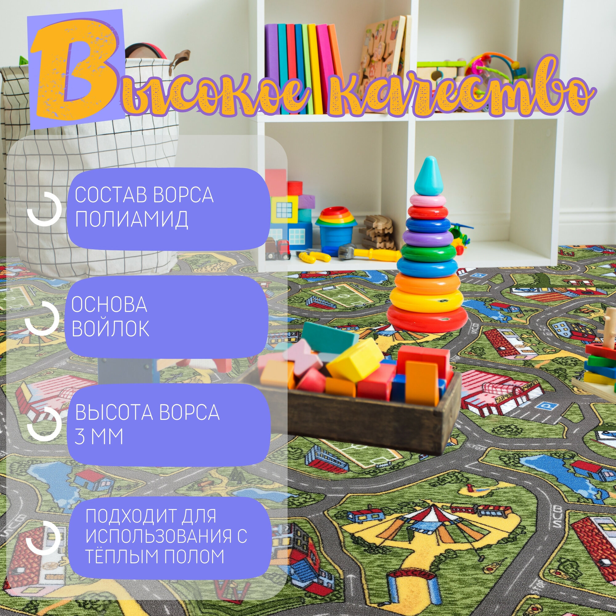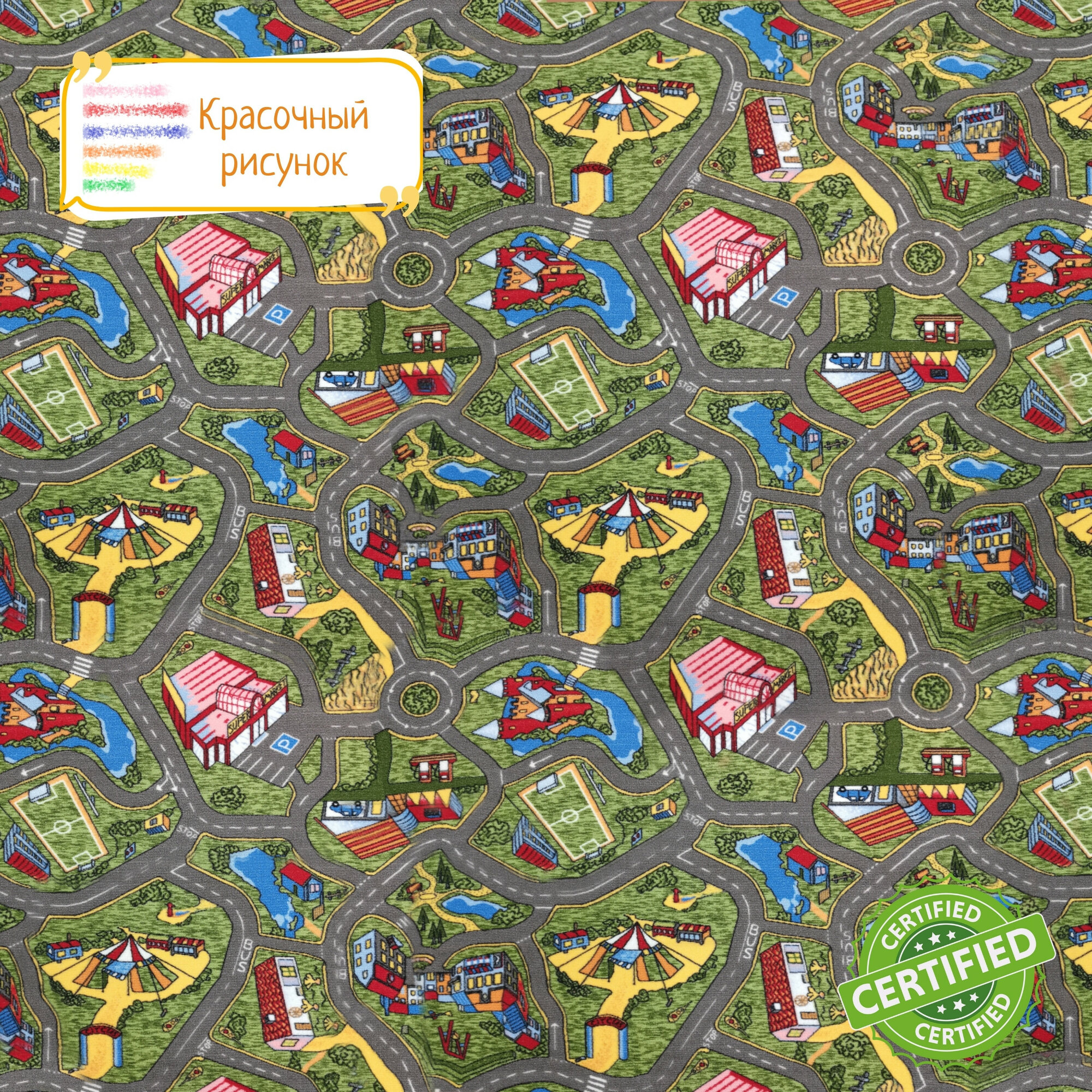 Купить Детский ковролин 2х2 м, "С дорогами", серо-зеленый с оверлоком