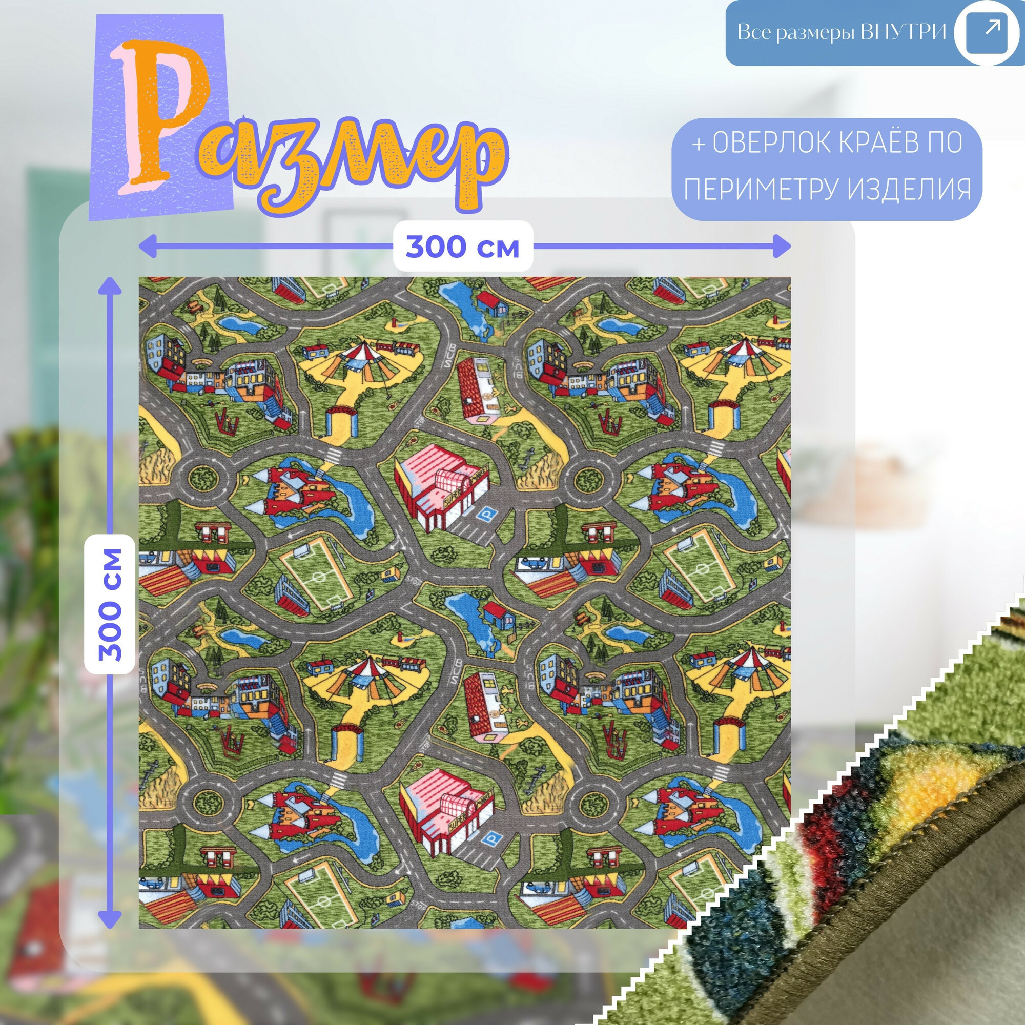 СохранитьДетский ковролин 3х3 м, "С дорогами", серо-зеленый с оверлоком интересное: