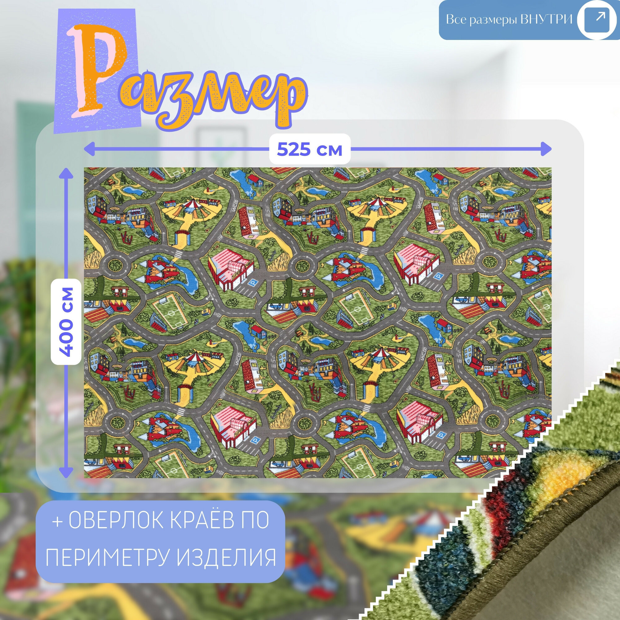Детский ковролин 3,5х5,25 м, "С дорогами", серо-зеленый с оверлоком