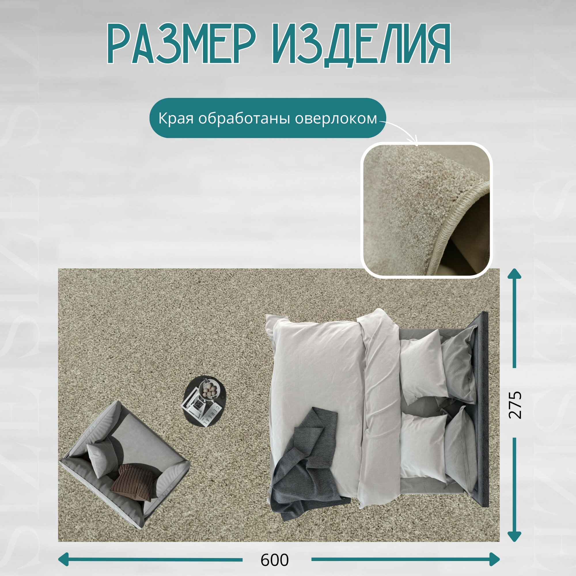 Ковролин метражом 3,25х5,75 м, с оверлоком "Линеар", перламутровый