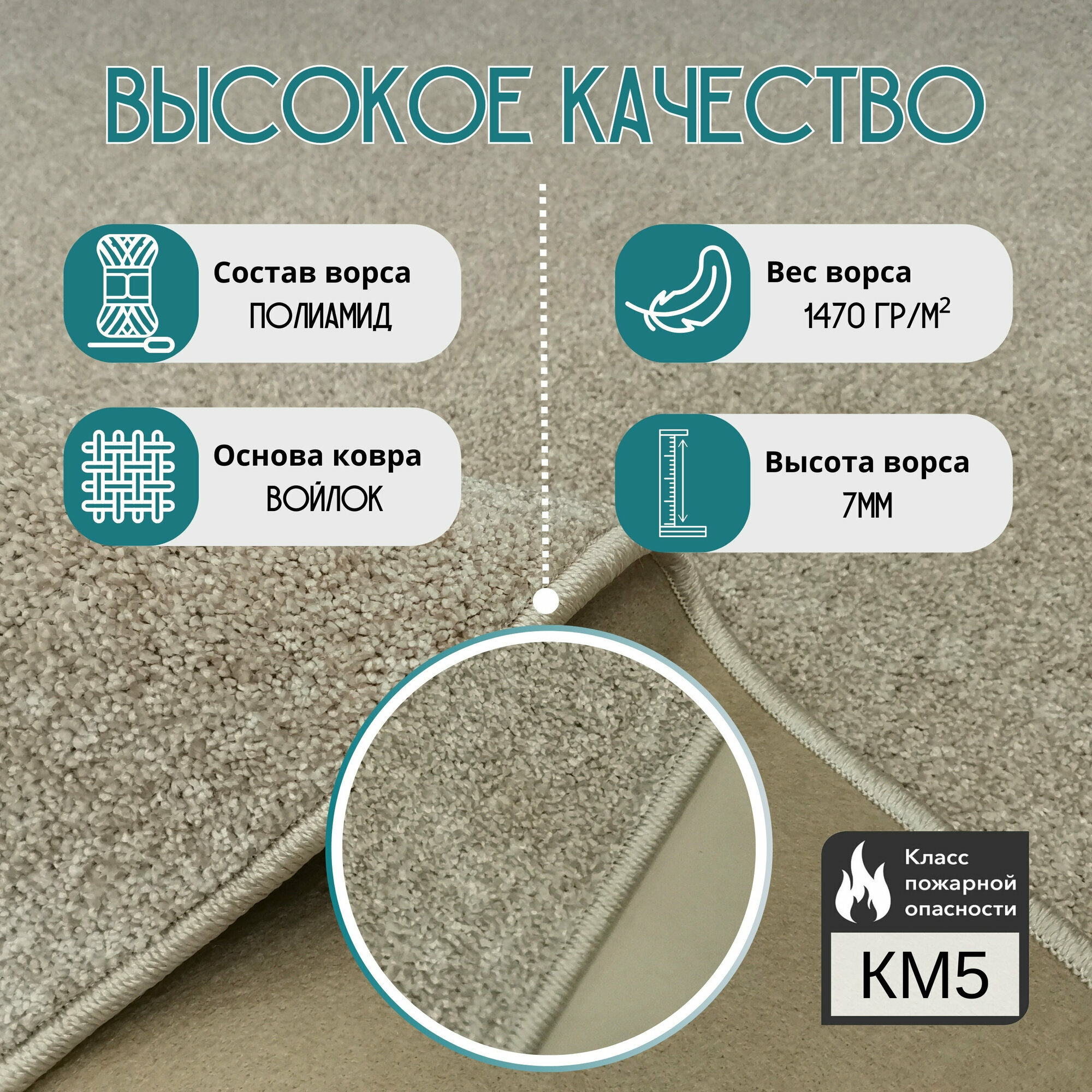 Ковролин метражом 4,75х5,75 м, с оверлоком "Линеар", перламутровый