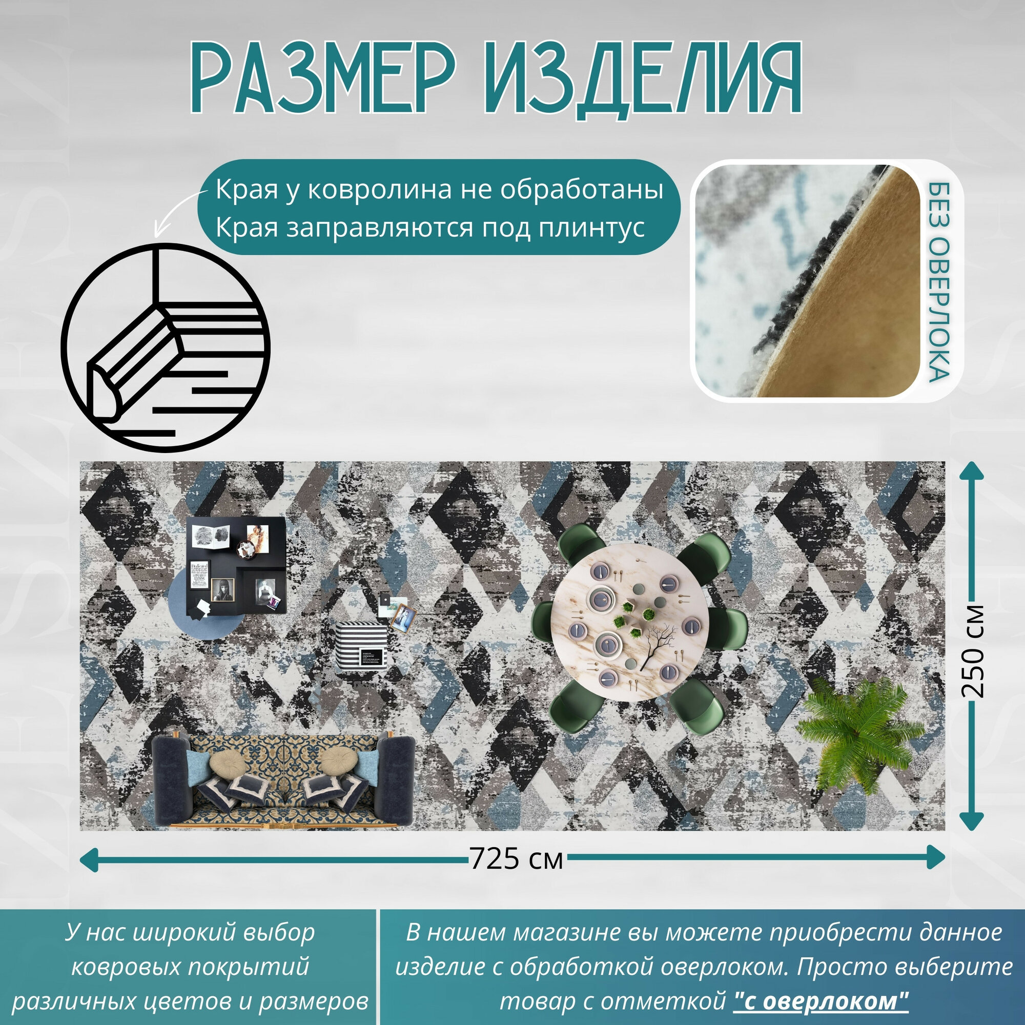 СохранитьКовролин метражом 2х7,25 м, гладкий "Ромб", серо-синий без оверлока интересное: