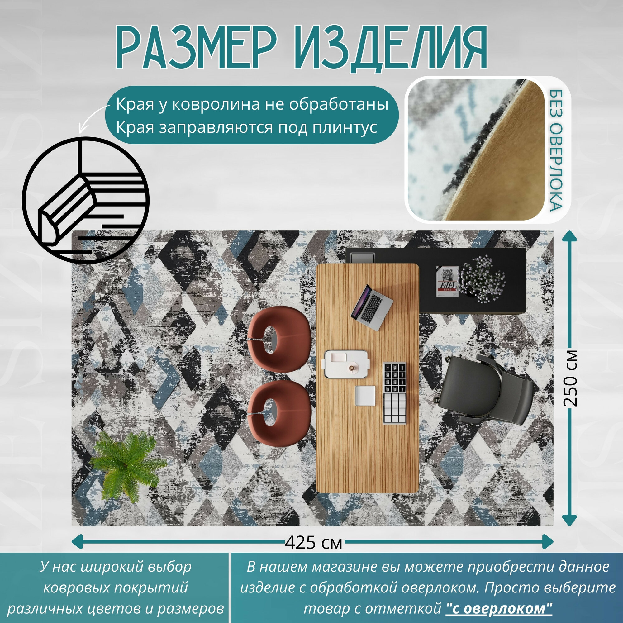 Ковролин метражом 2,5х4,25 м, гладкий "Ромб", серо-синий без оверлока
