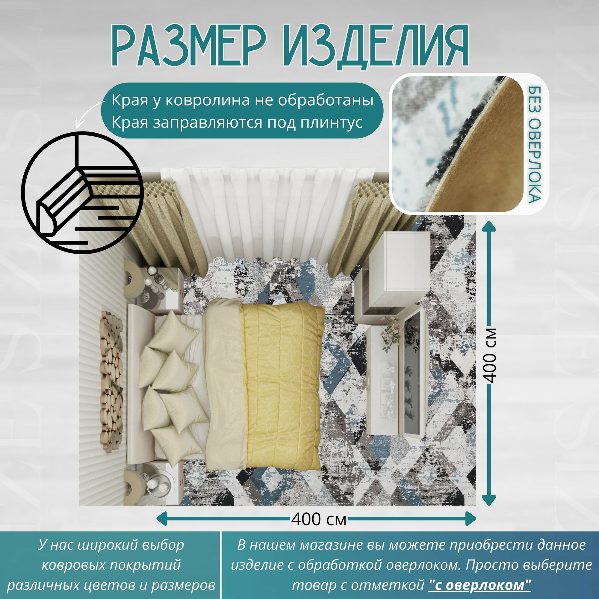 СохранитьКовролин метражом 4х4 м, гладкий "Ромб", серо-синий без оверлока интересное: