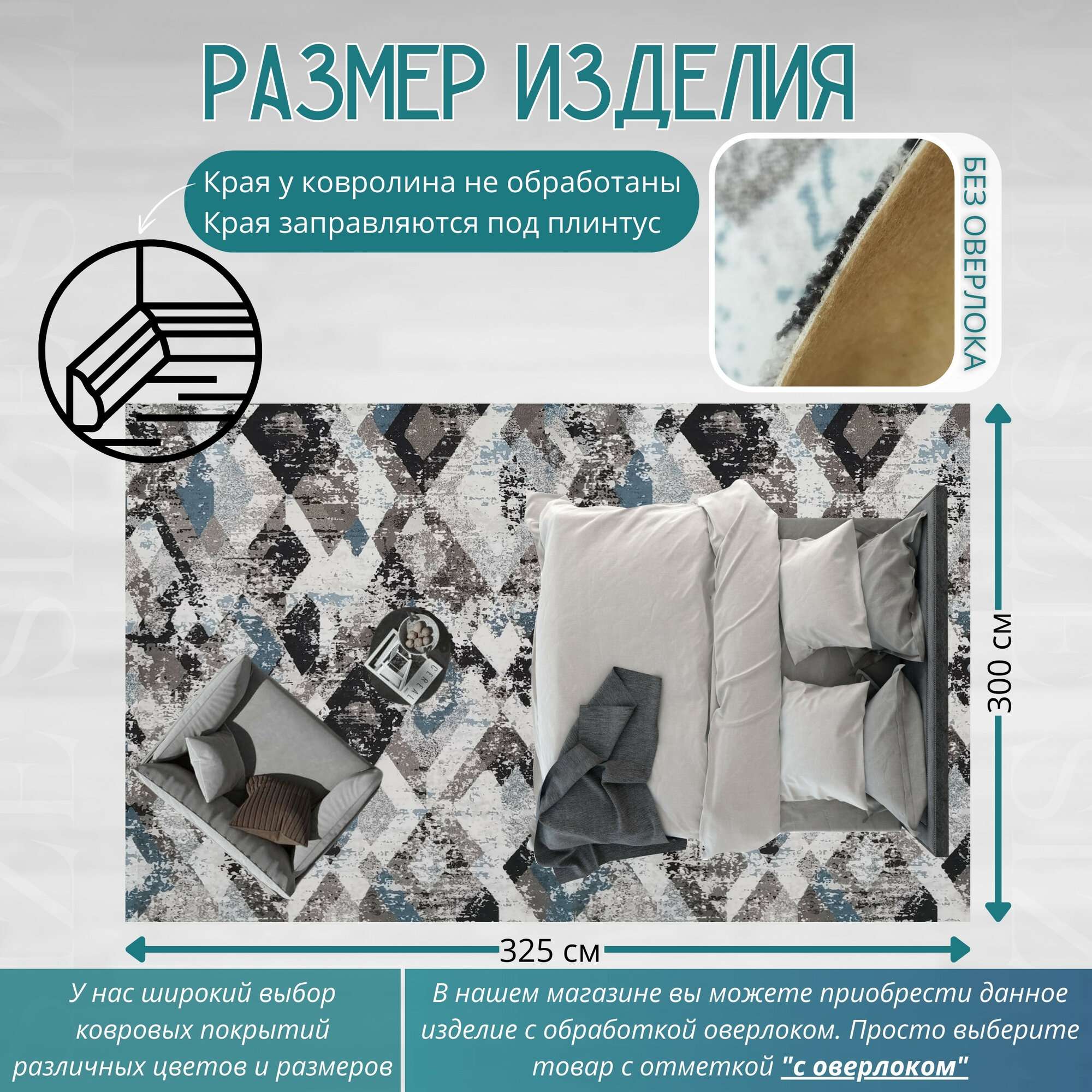 СохранитьКовролин метражом 3х3,25 м, гладкий "Ромб", серо-синий без оверлока интересное: