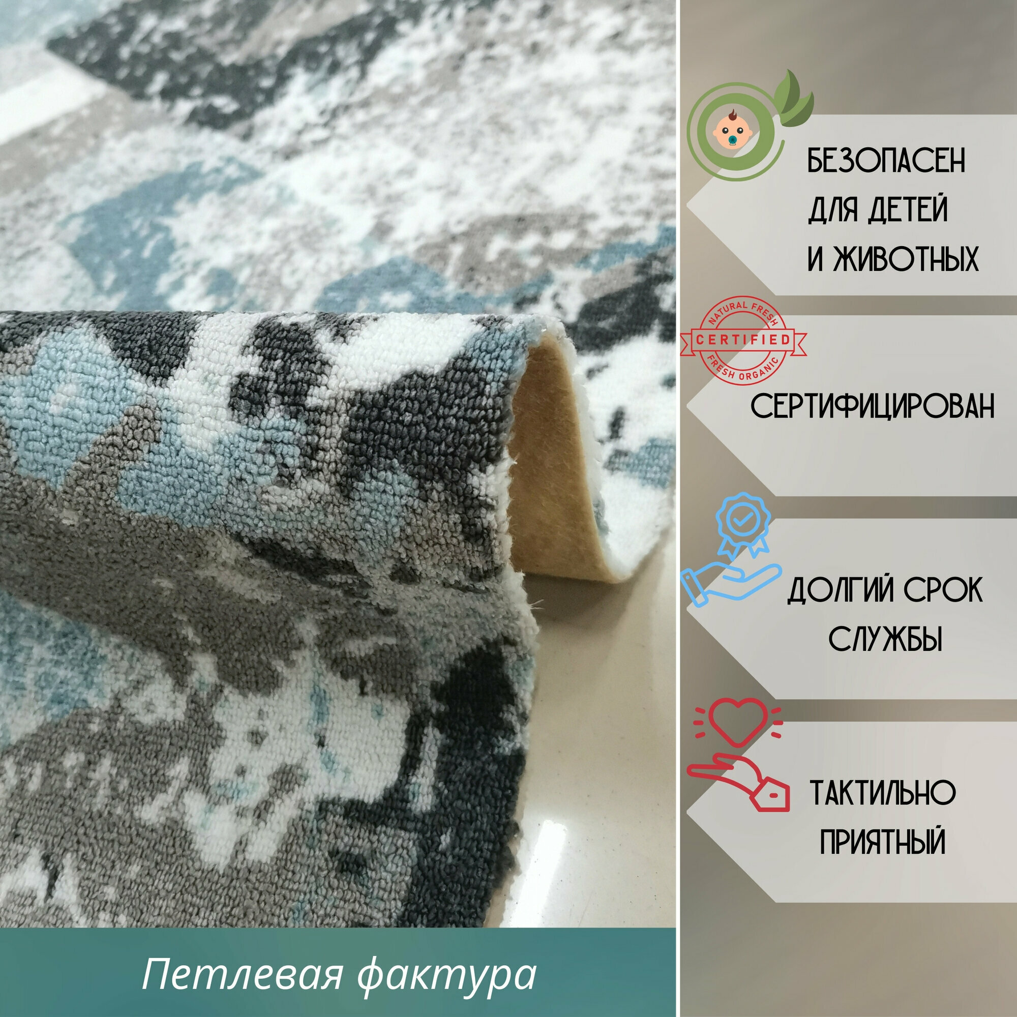 СохранитьКовролин метражом 2х3,5 м, гладкий "Ромб", серо-синий без оверлока интересное: