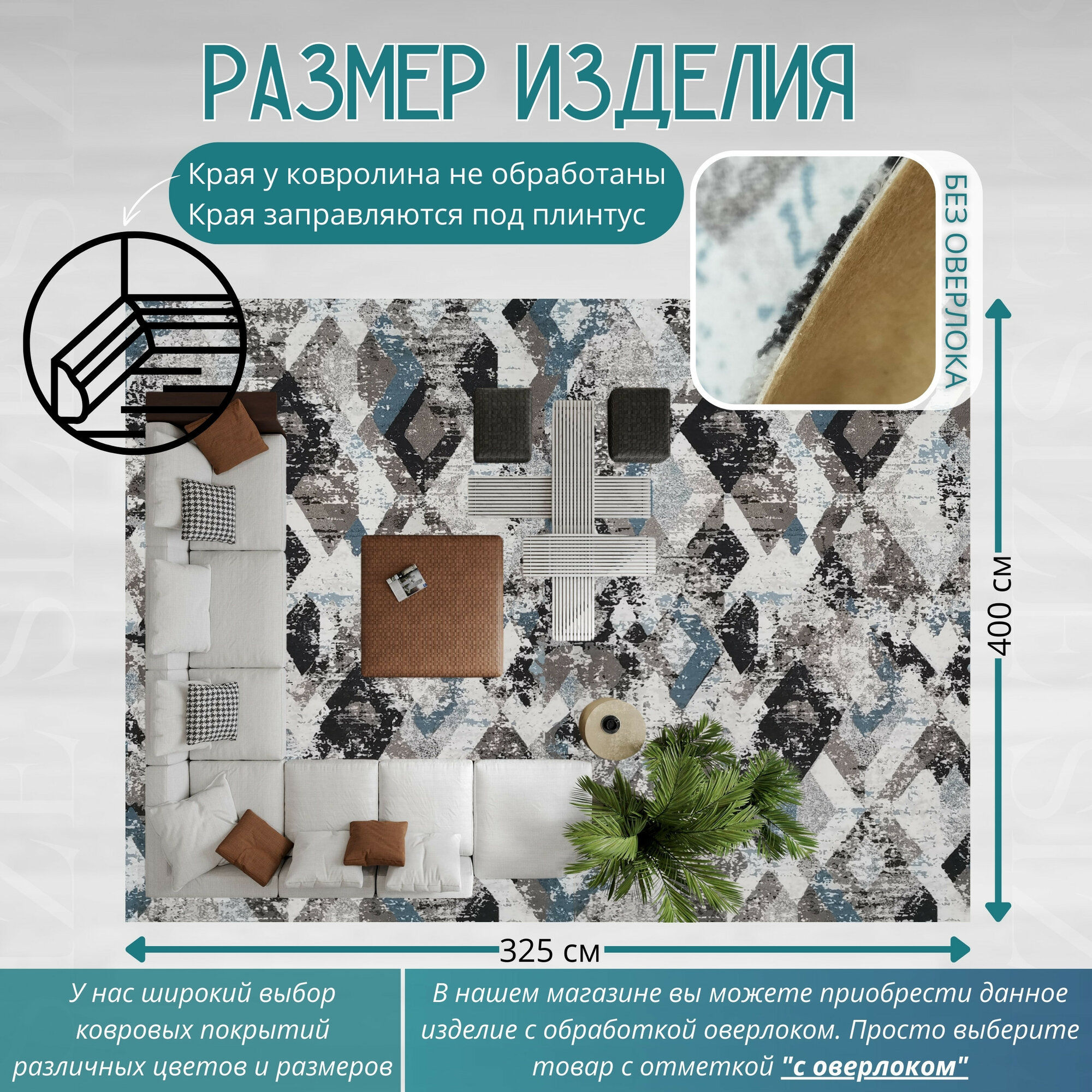 СохранитьКовролин метражом 4х3,25 м, гладкий "Ромб", серо-синий без оверлока интересное: