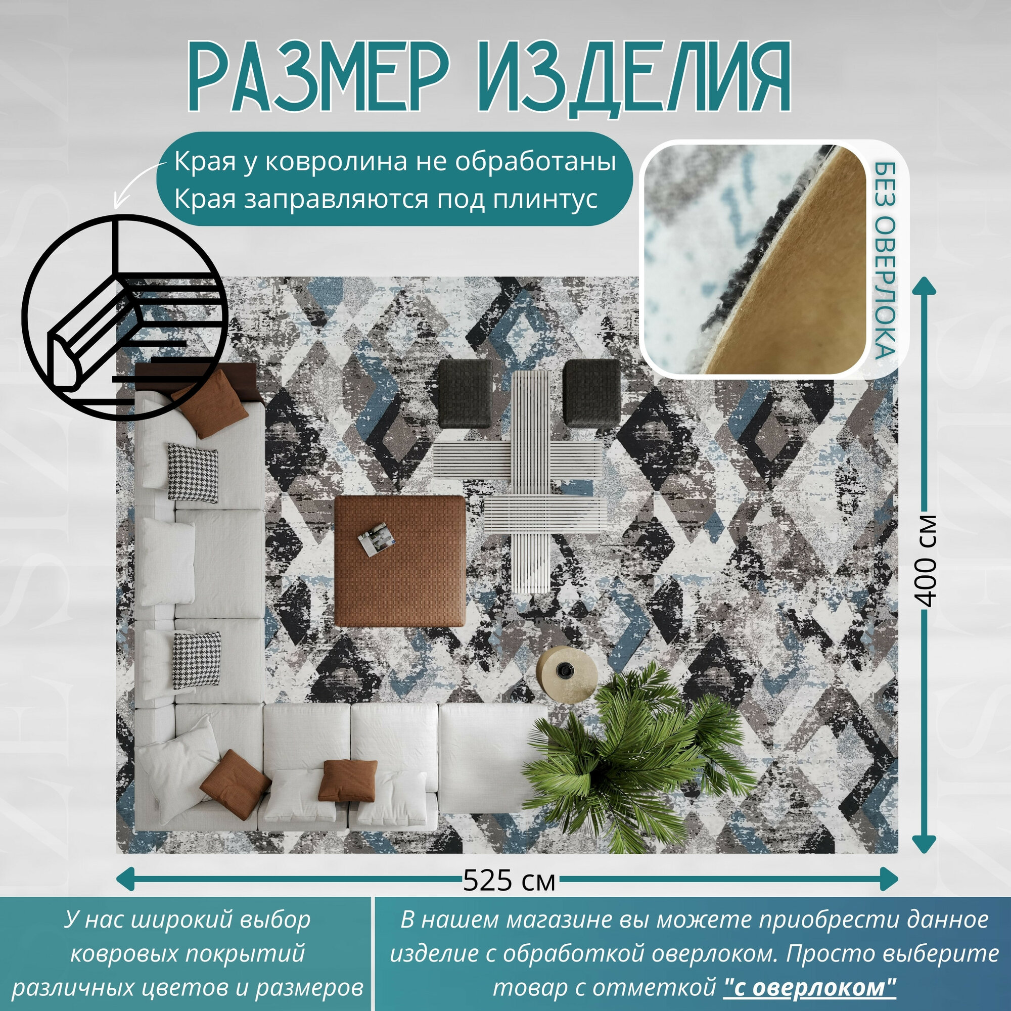 СохранитьКовролин метражом 4х5,25 м, гладкий "Ромб", серо-синий без оверлока интересное: