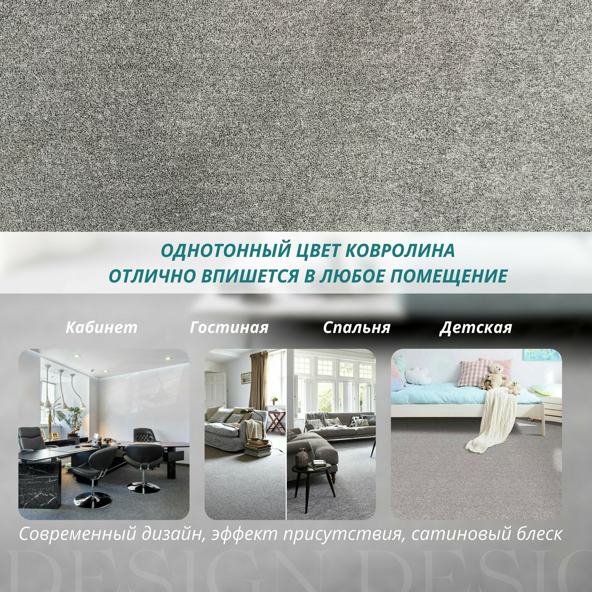Ковролин метражом 3,5х5,75 м, с оверлоком "Линеар", серый