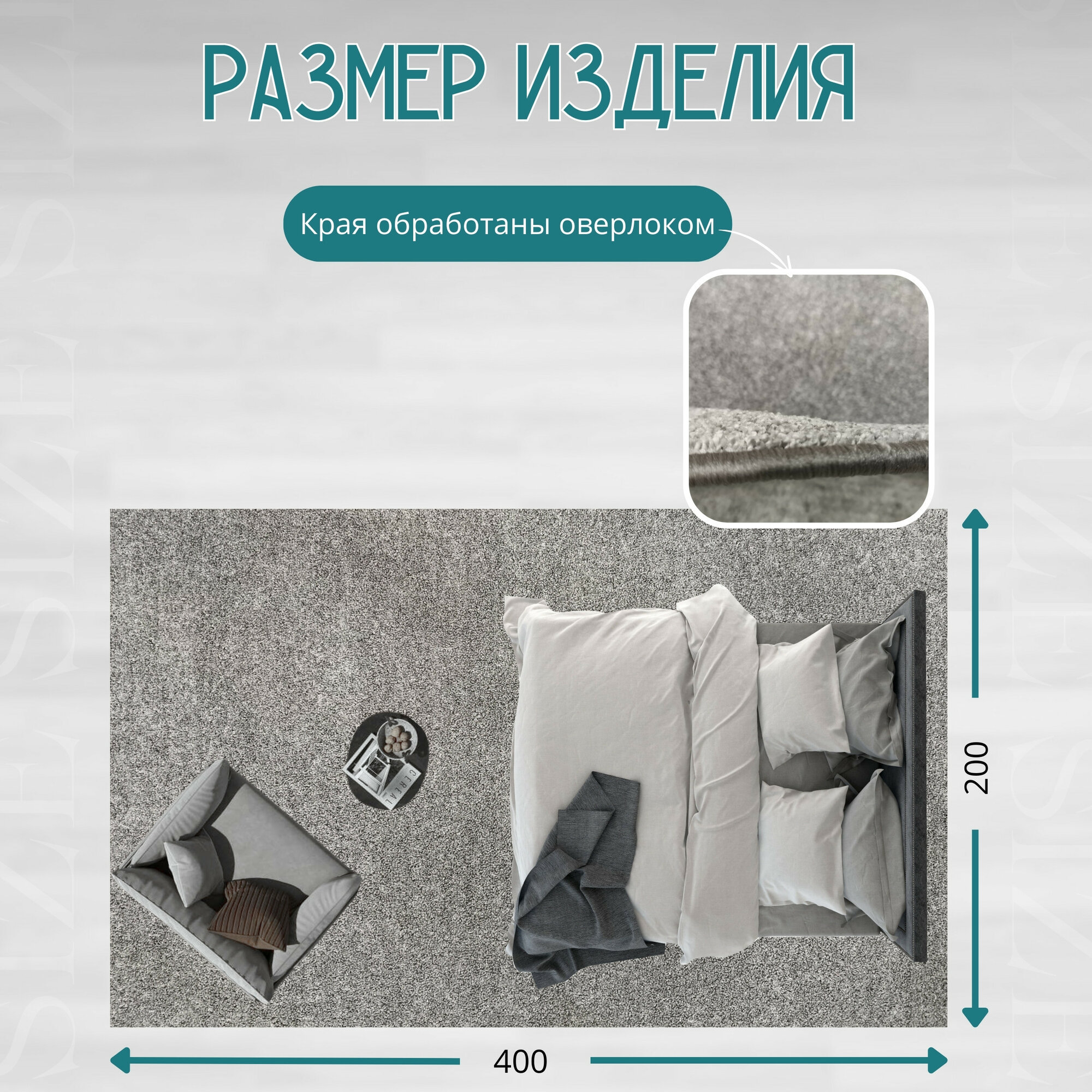 Ковролин метражом 4х3,5 м, с оверлоком "Линеар", серый